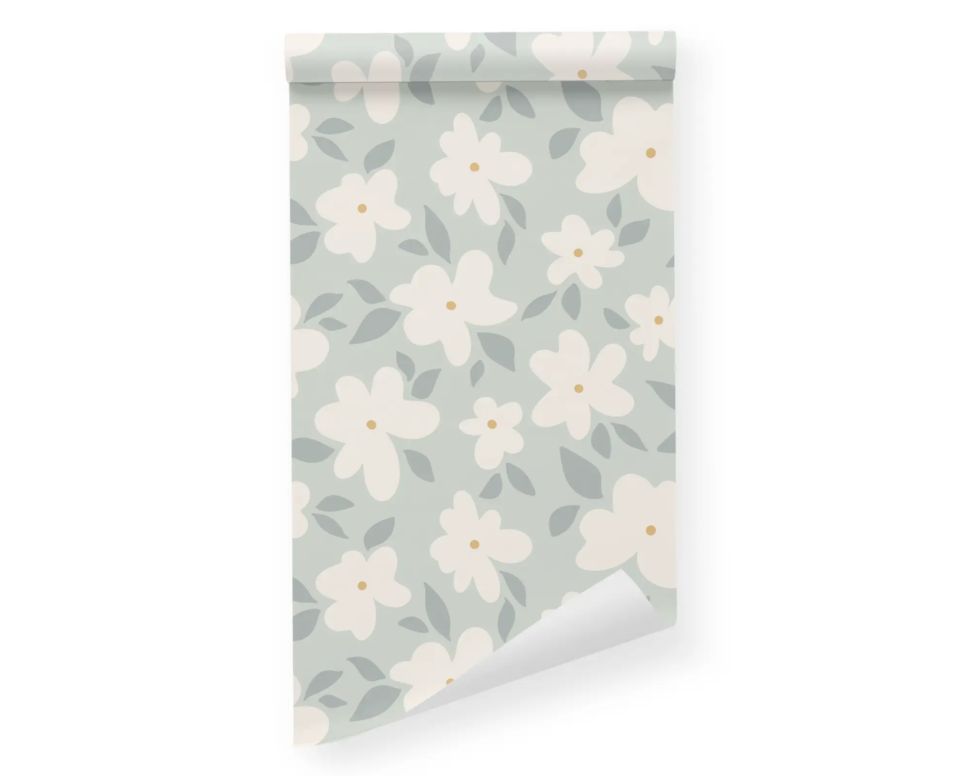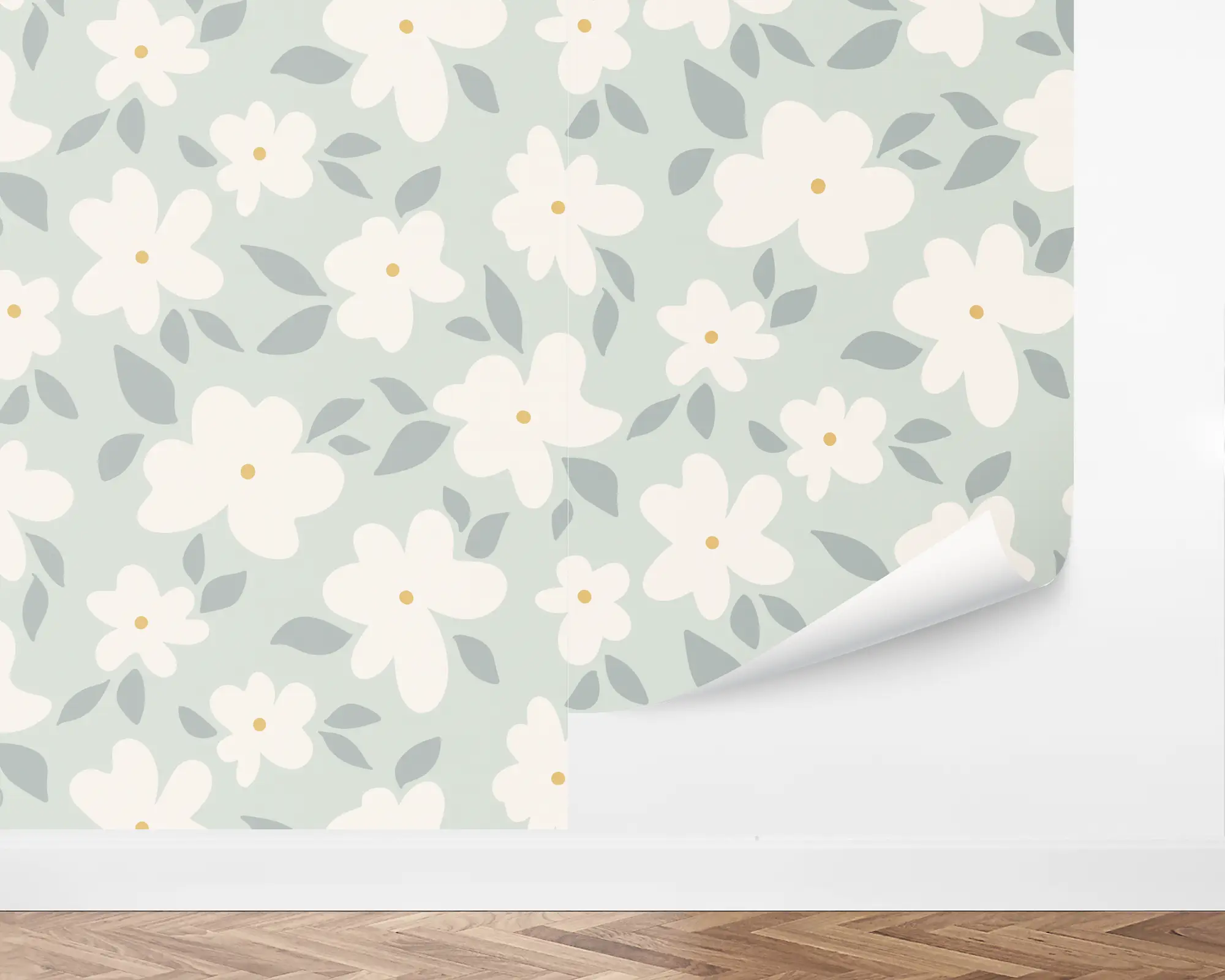 Our Abstract Meadow Peel And Stick Removable Wallpaper will add a floral accent to any room in your home. Cute ivory flowers with leaf accents dance across a light green background. Customize your wallpaper with our array of color options to match the interior of your home perfectly!