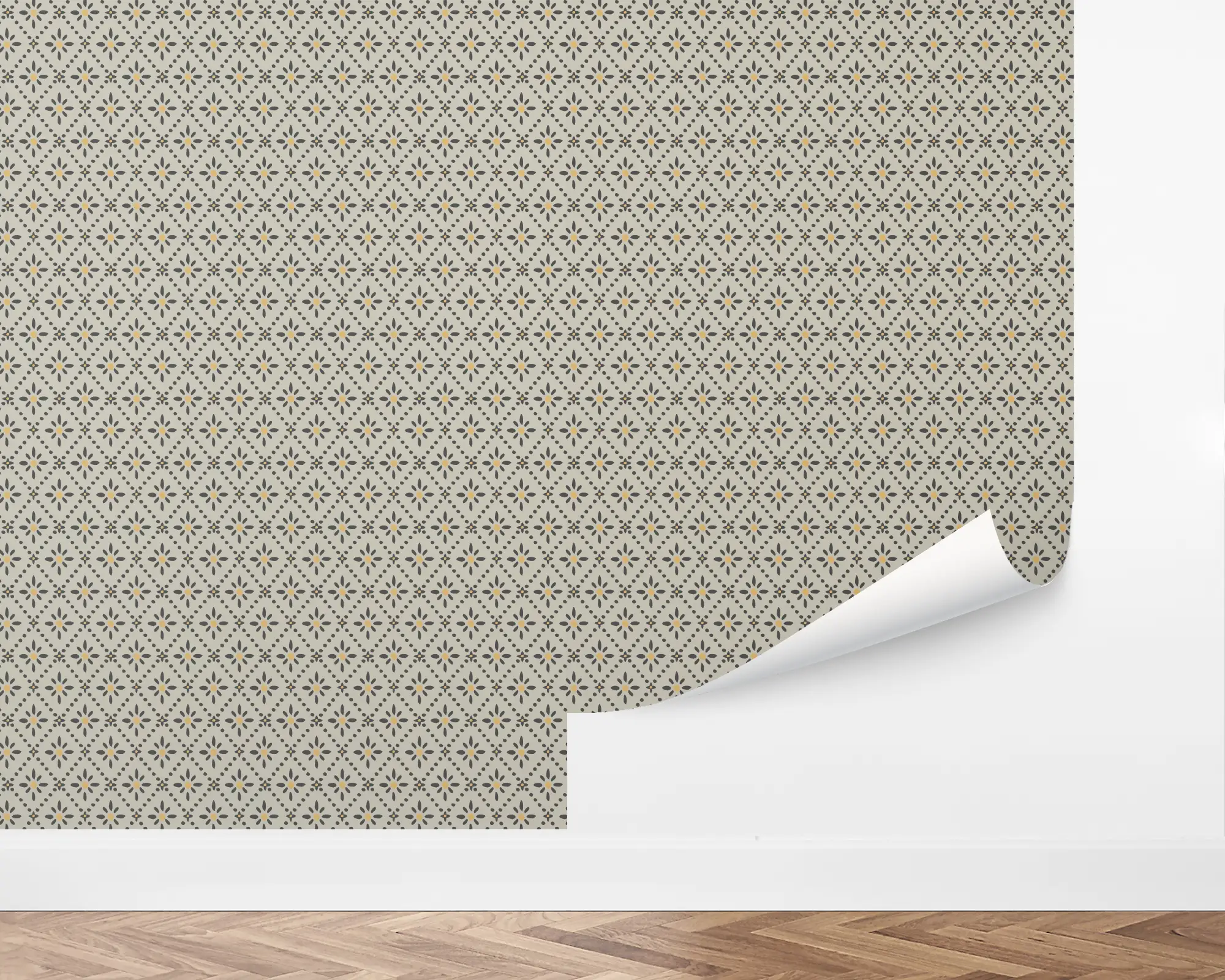 Bloom Lattice is a charming floral diamond wallpaper design that adds vintage elegance to any space. This repeating pattern features small-scale flower motifs framed in dotted diamond outlines, offering a timeless look perfect for farmhouse decor, powder rooms, or accent walls. Customizable in over 200 colors, this peel and stick wallpaper brings both character and convenience to your home design.