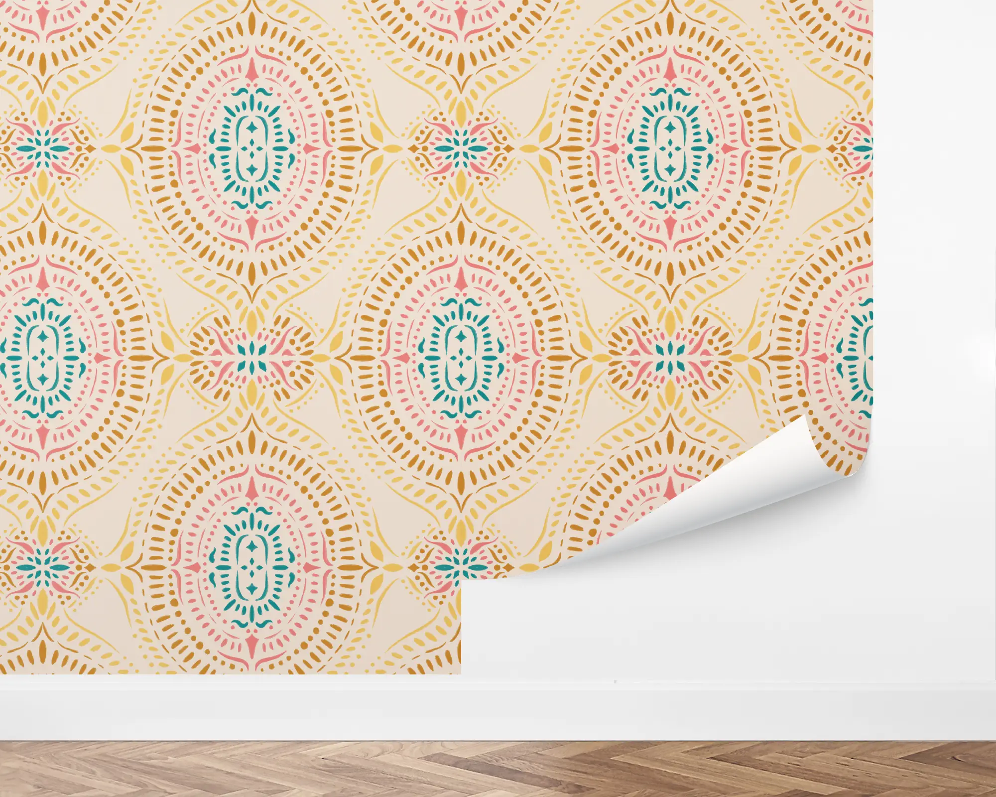 Bring a pop of color to a classic look anywhere in your home with our Boho Medallion Peel and Stick Wallpaper. A colorful mosaic creates a beautiful pattern on top of a grain background. Customize with your favorite combinations of colors to match your personal style perfectly!