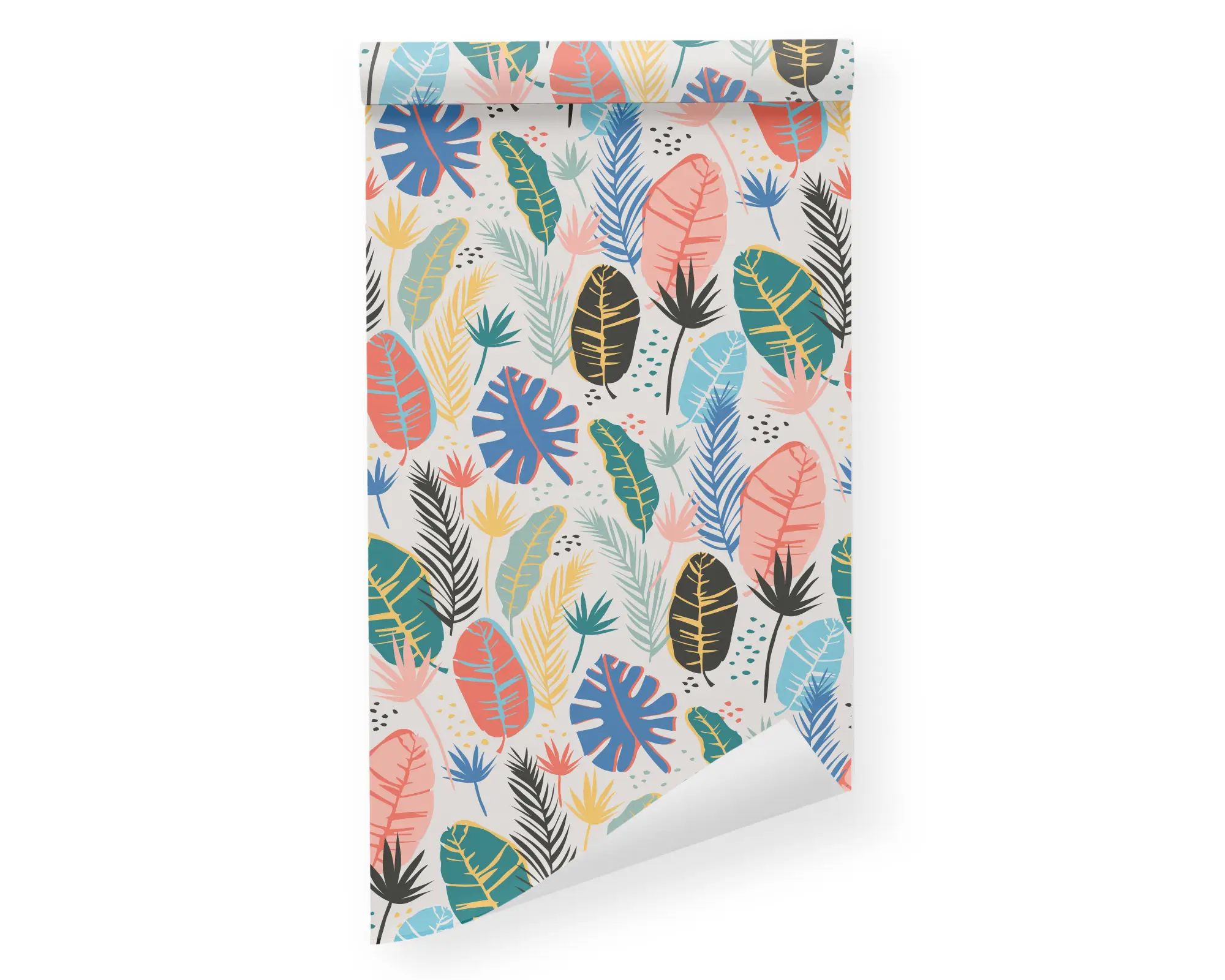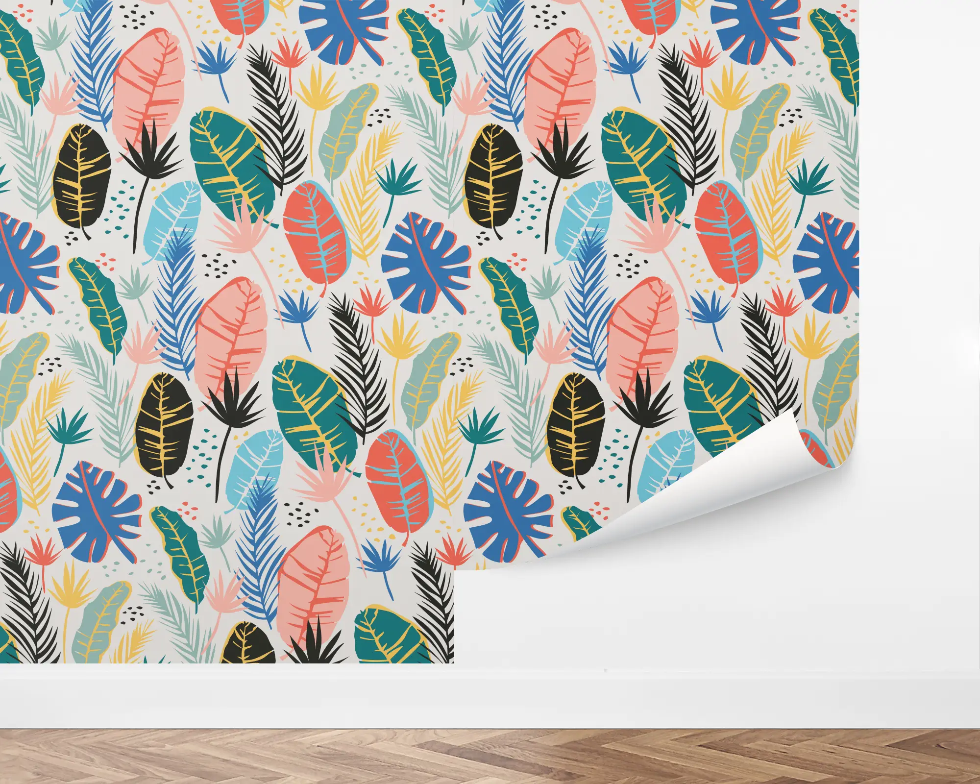 Our Boho Palms Peel and Stick Wallpaper are sure to catch the eye of anyone in any room of your home. Bold and colorful illustrations of varieties of foliage on top of a snow background. Personalize with your favorite combinations of colors to match your interior style!