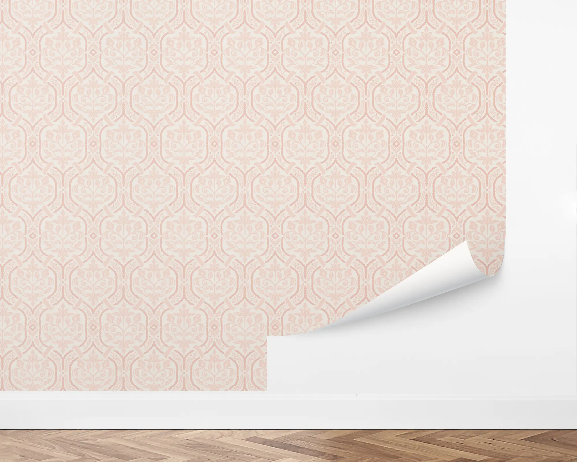 Our Botanical Chain Peel and Stick Wallpaper is sure to add an elegant statement to any wall in your home. Love and nude illustrations of a damask design are printed on top of an ivory background. Personalize with endless color combinations to perfectly fit your interior style!