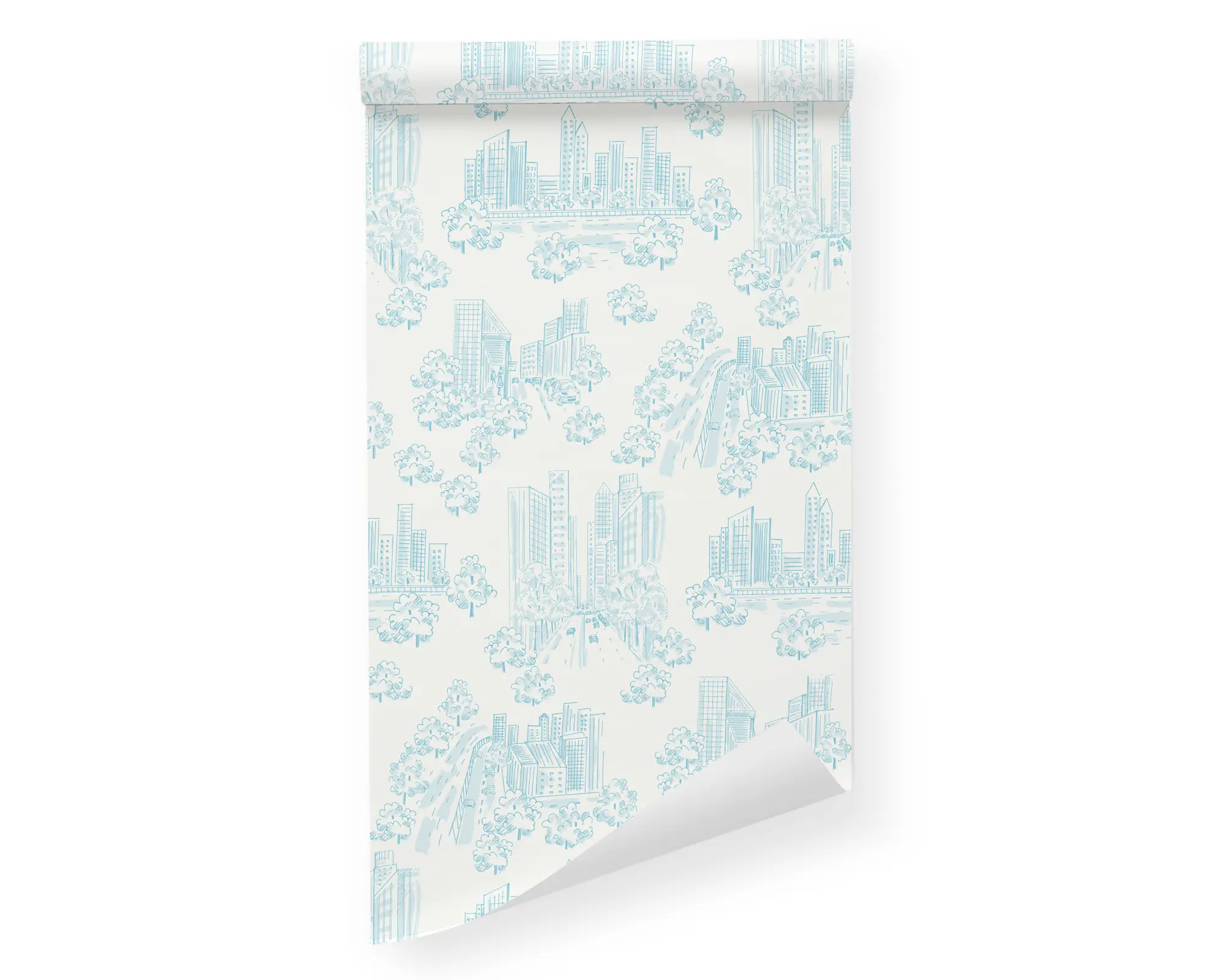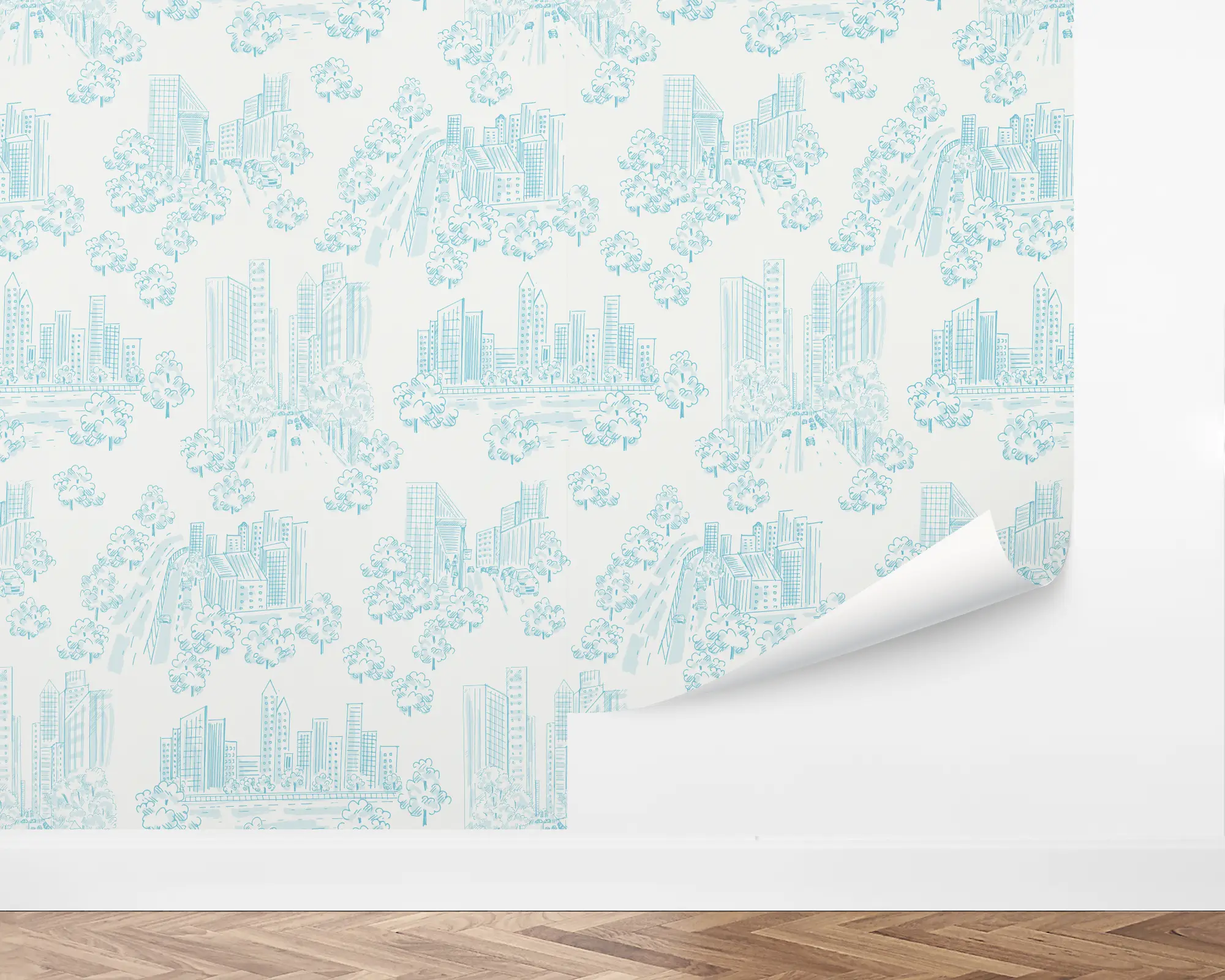Our Bustling Cityscape Peel and Stick Wallpaper bring the feel of big city life to any room in your home. Cozumel outlines of skyscrapers with horizon accents are hand-drawn on top of a ceramic background. Choose endless combinations of colors to match your interior style perfectly!