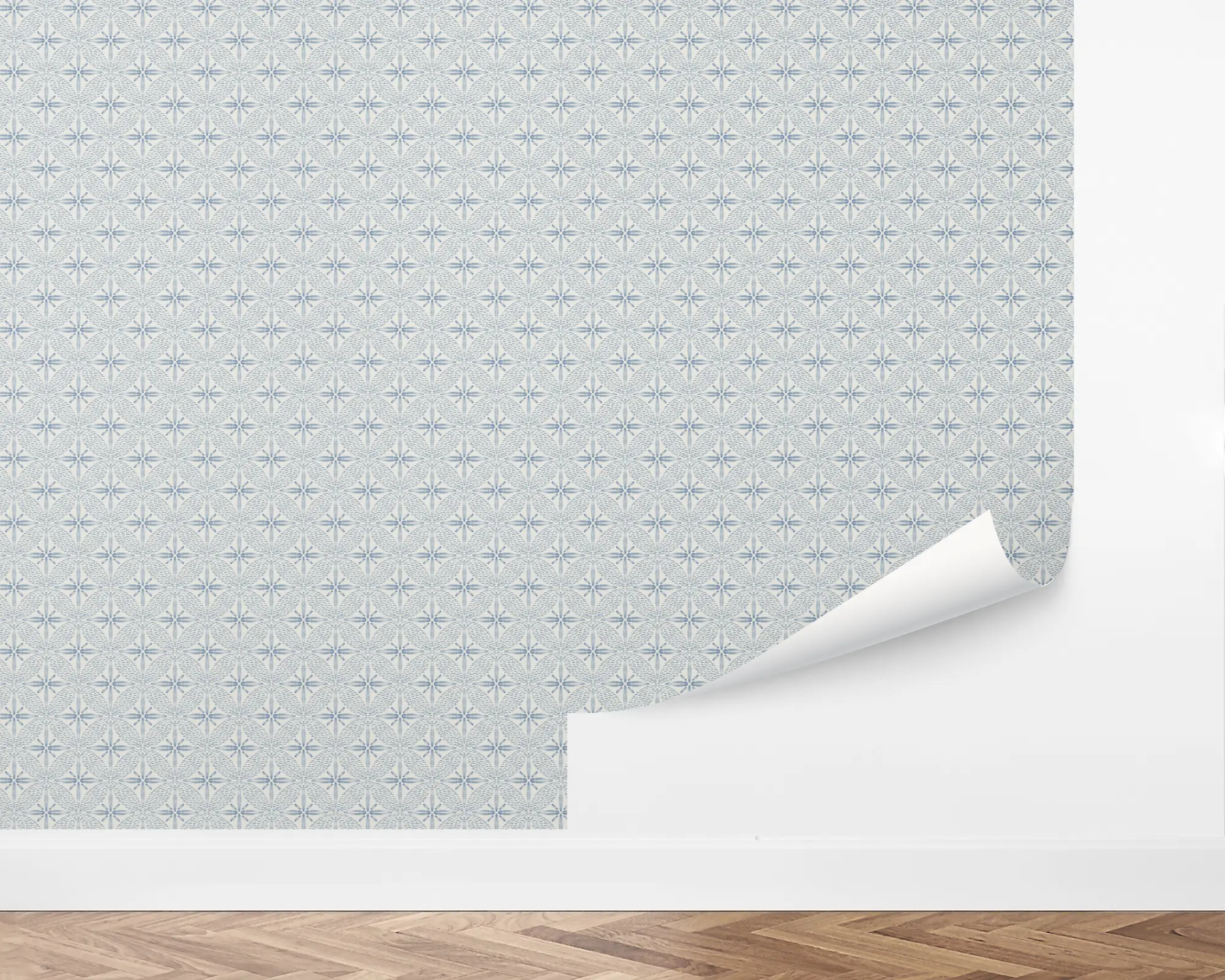 Create a truly stunning space with our Circle Star Peel and Stick Removable Wallpaper. This beautiful design features a rustic, twinkling star pattern in blue over a white background. Fully customizable with any of our beautiful colors, this wallpaper is perfect for nearly any room in your home.