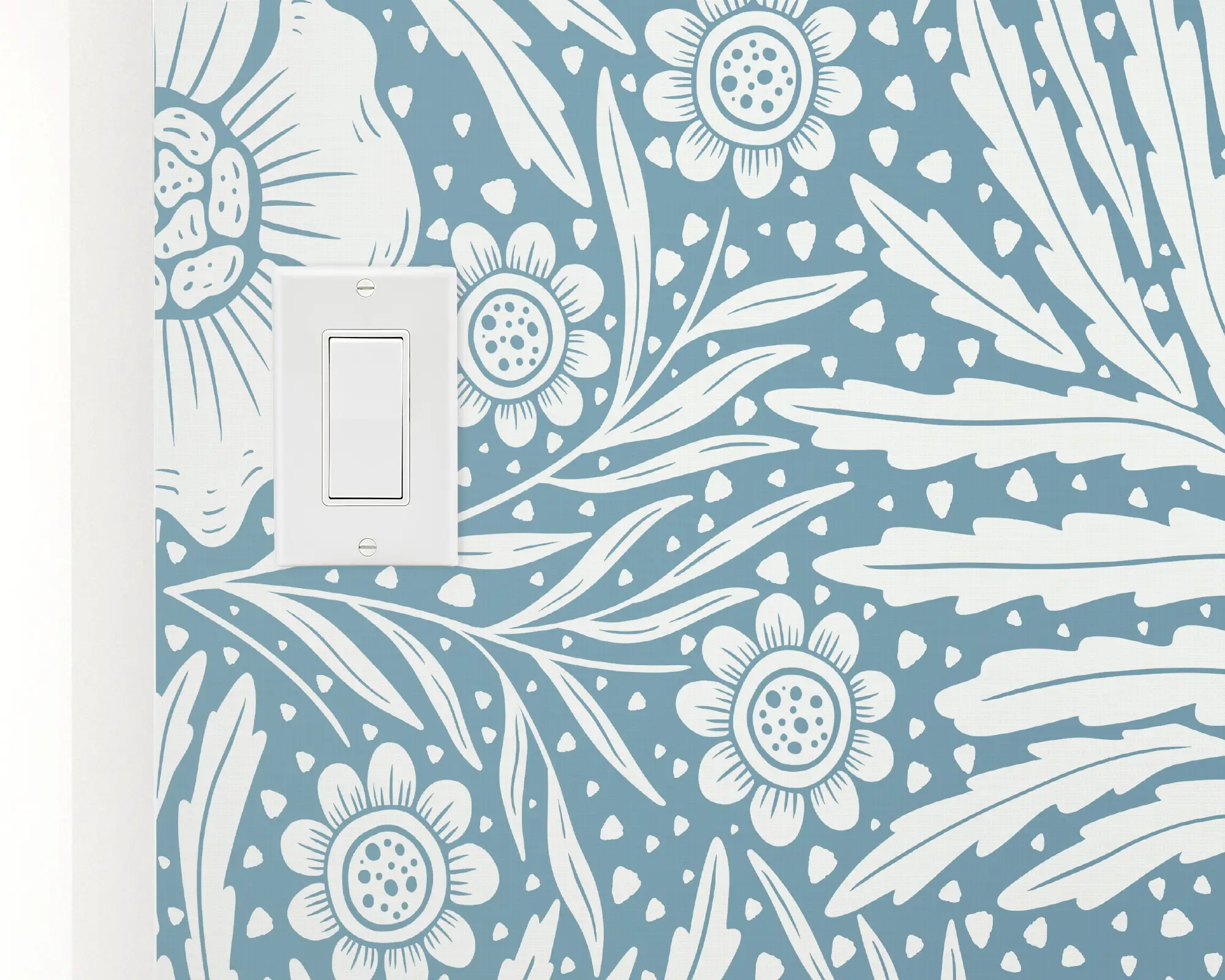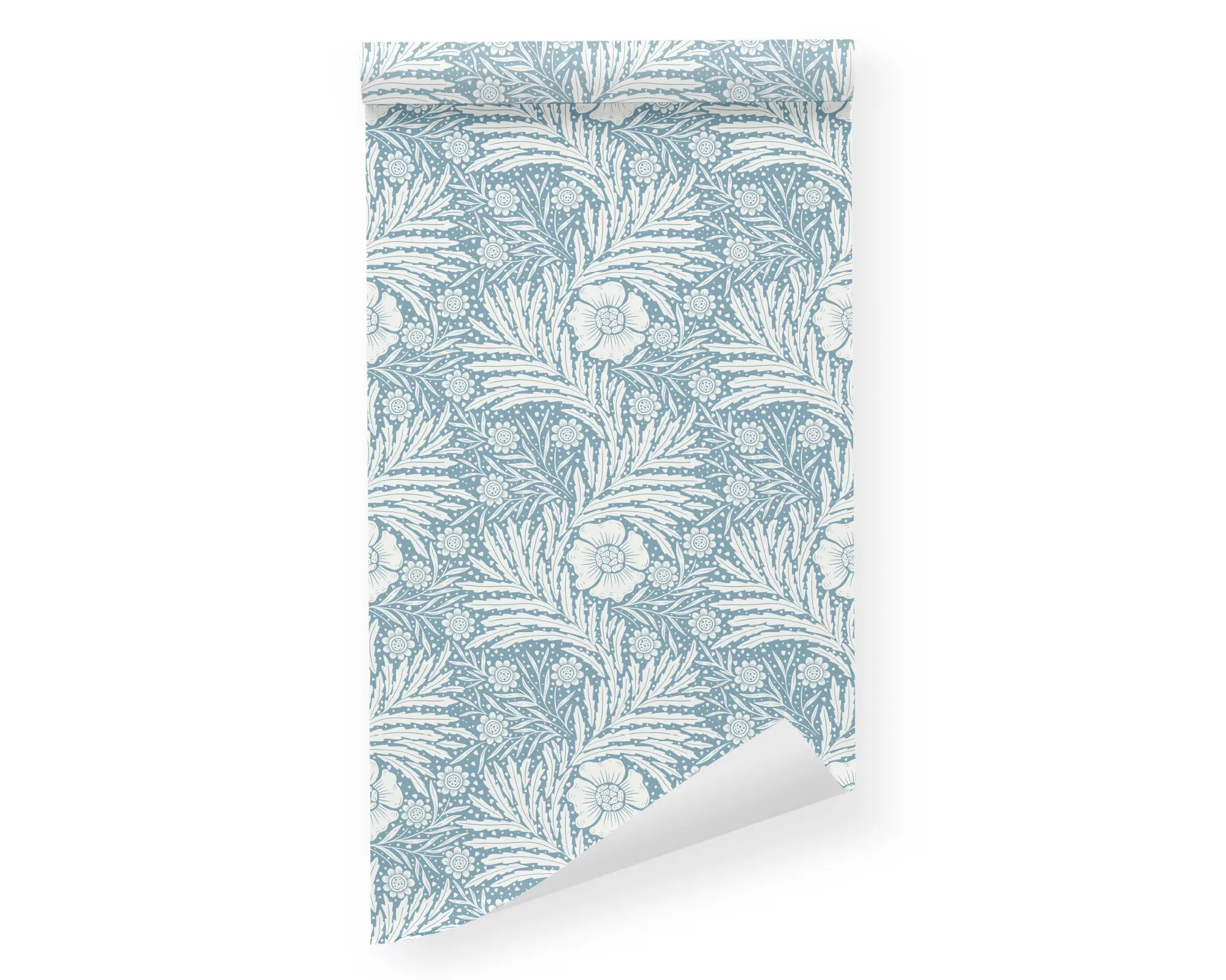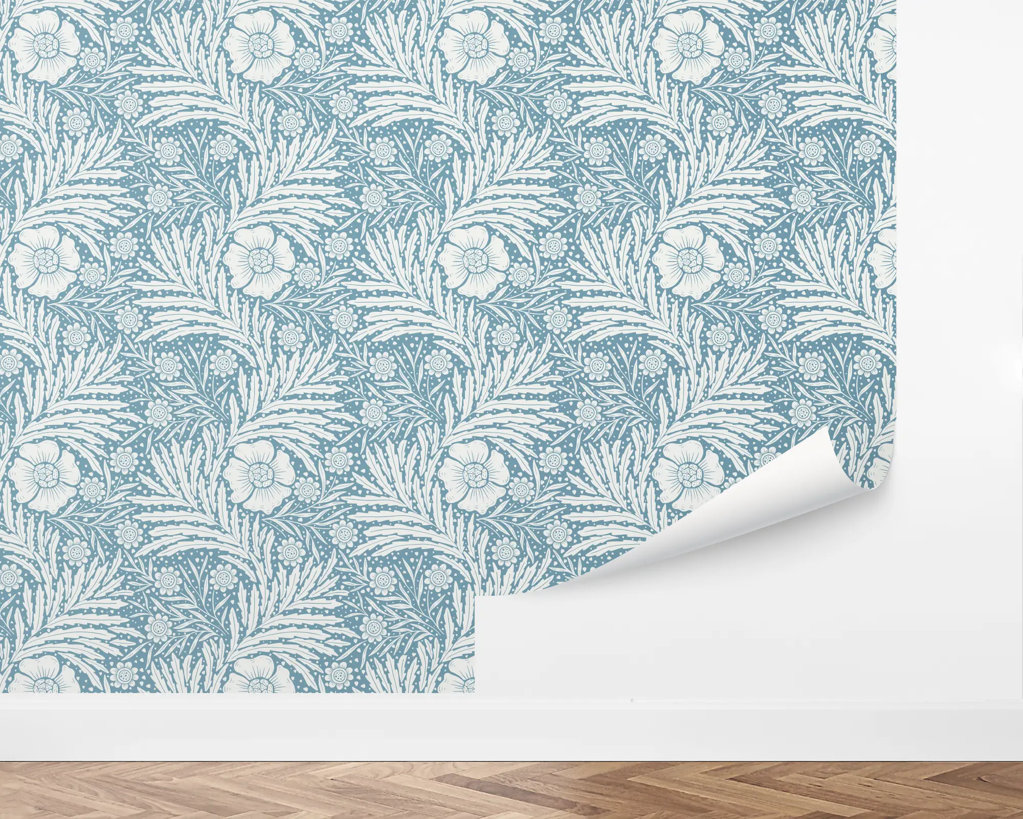 Create the perfect accent with our Climbing Floral Wall Peel and Stick Wallpaper. This monochrome design features white ferns and flowers laid over a blue backdrop. Fully customizable with any of our beautiful colors to match your theme, this removable wallpaper is the perfect way to give your space a little extra something.