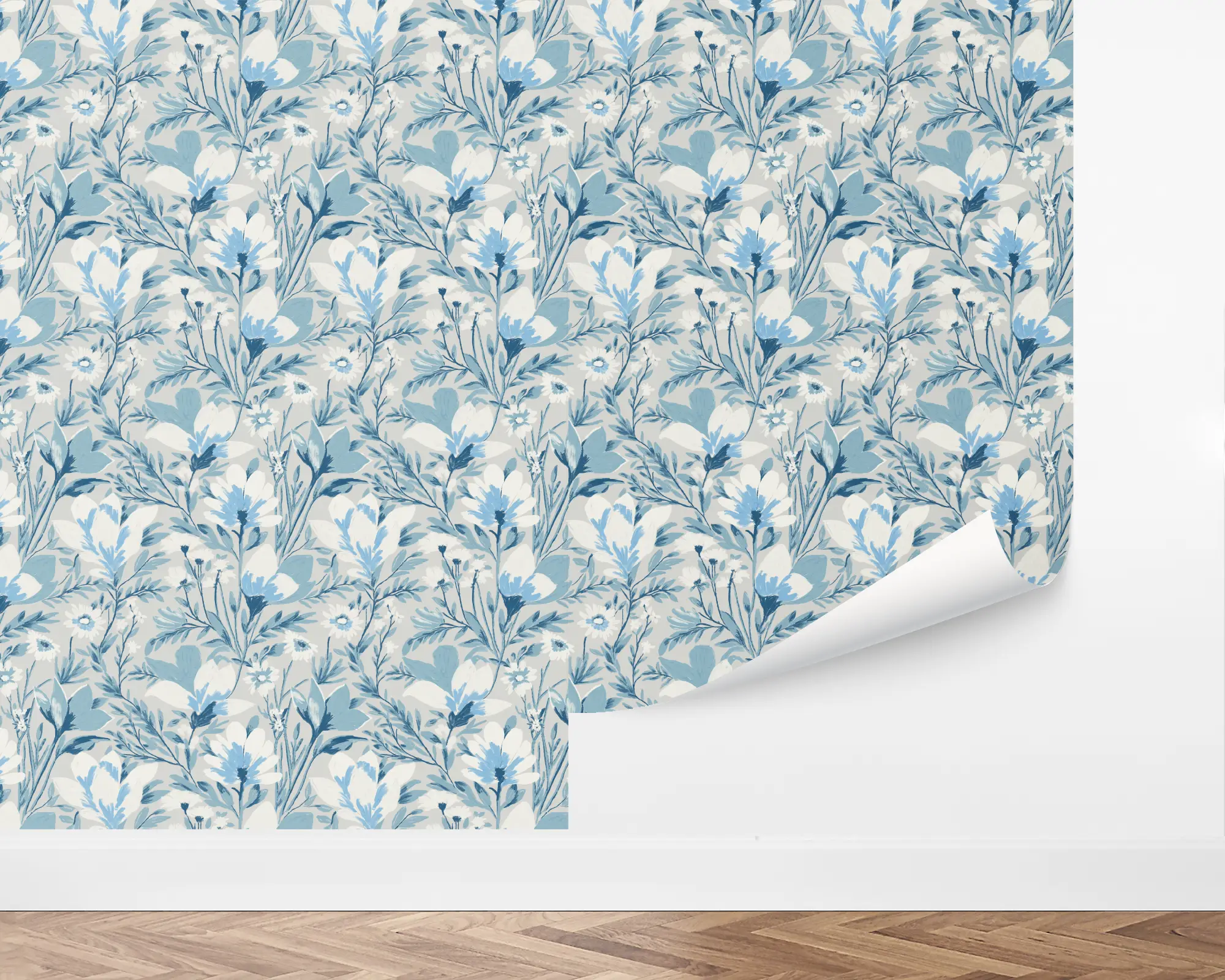 Bring new life to your interior with our Cobalt Bloom Peel and Stick Removable Wallpaper. This whimsical design features a flurry of painted florals in blue and grey hues. Available in any of our paper types and gorgeous colors, this wallpaper is perfect for any space needing a little something extra.