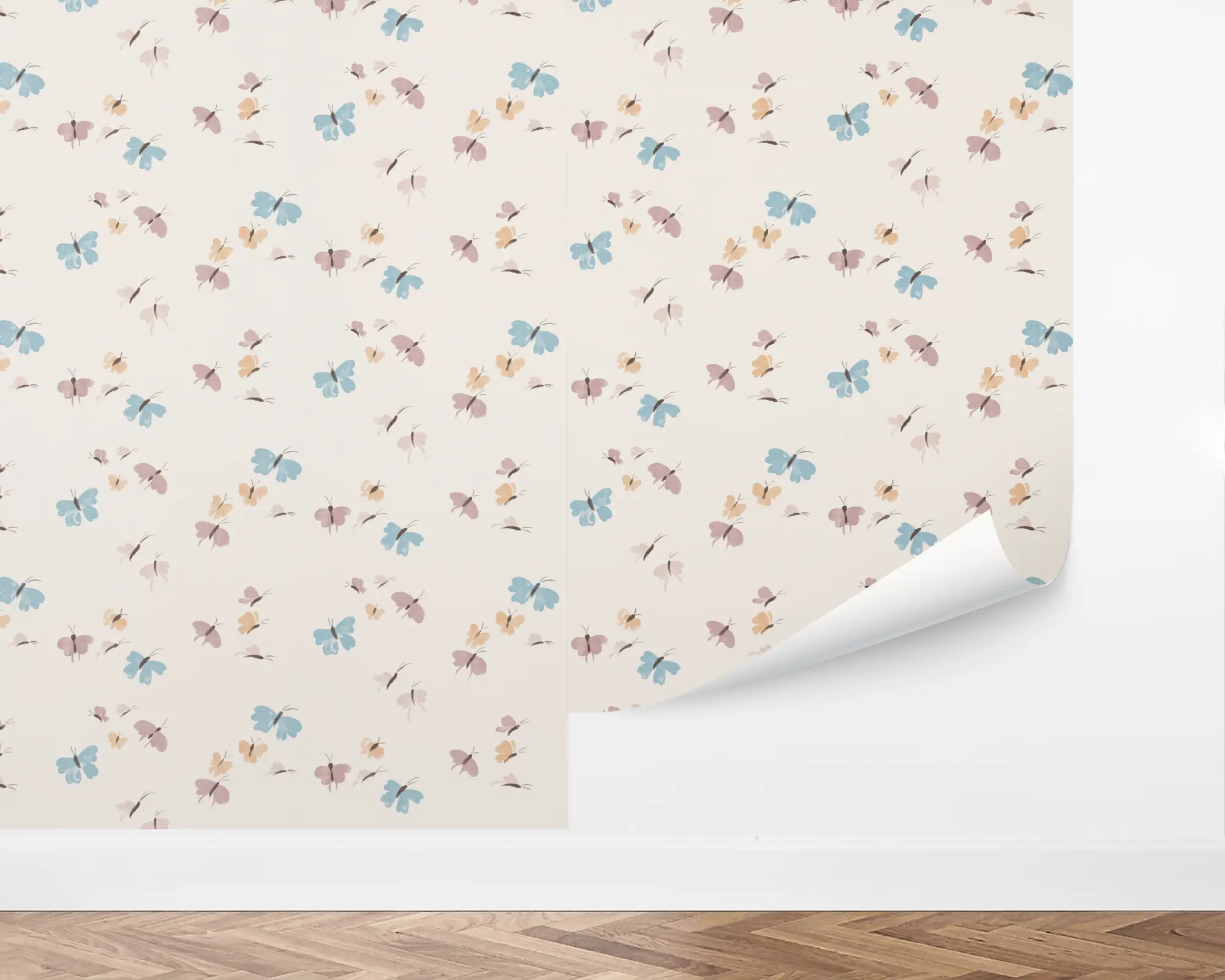 Our Colorful Butterflies Peel and Stick Wallpaper create the perfect accent wall in your child's room. Colorful fluttering butterflies are painted on top of an ivory background. Customize with different color combinations to match your interior style perfectly!