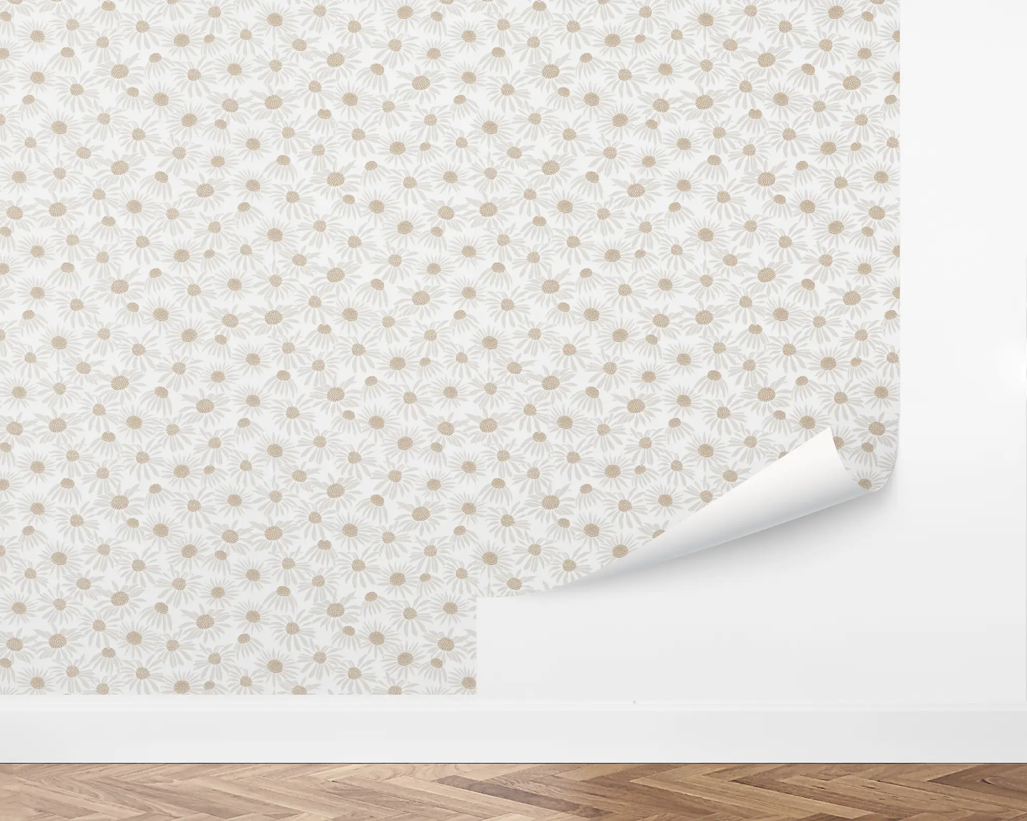 Create anything from a country-chic space to a cottage-core retreat with our Coneflower Fields Peel And Stick Removable Wallpaper. This design features a neutral-toned display of coneflower blossoms over a white background. Fully customizable with any of our beautiful colors, this design is perfect for inventing your dream room.