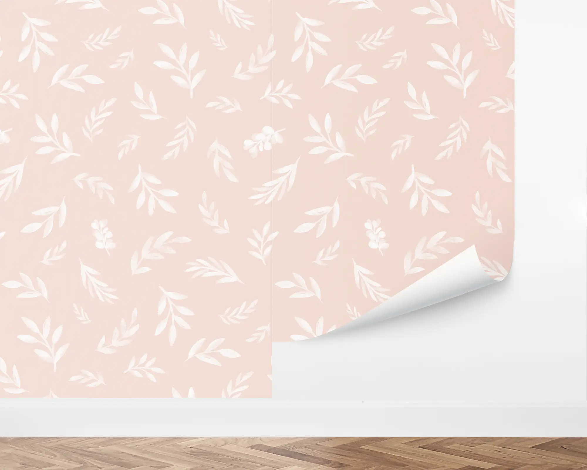 Make a statement on any wall of your home with our Dainty Branches Peel And Stick Removable Wallpaper. Watercolor illustrations of foliage delicately lay against the light-pink background. Explore hundreds of color combinations to add a pop of color to any room!