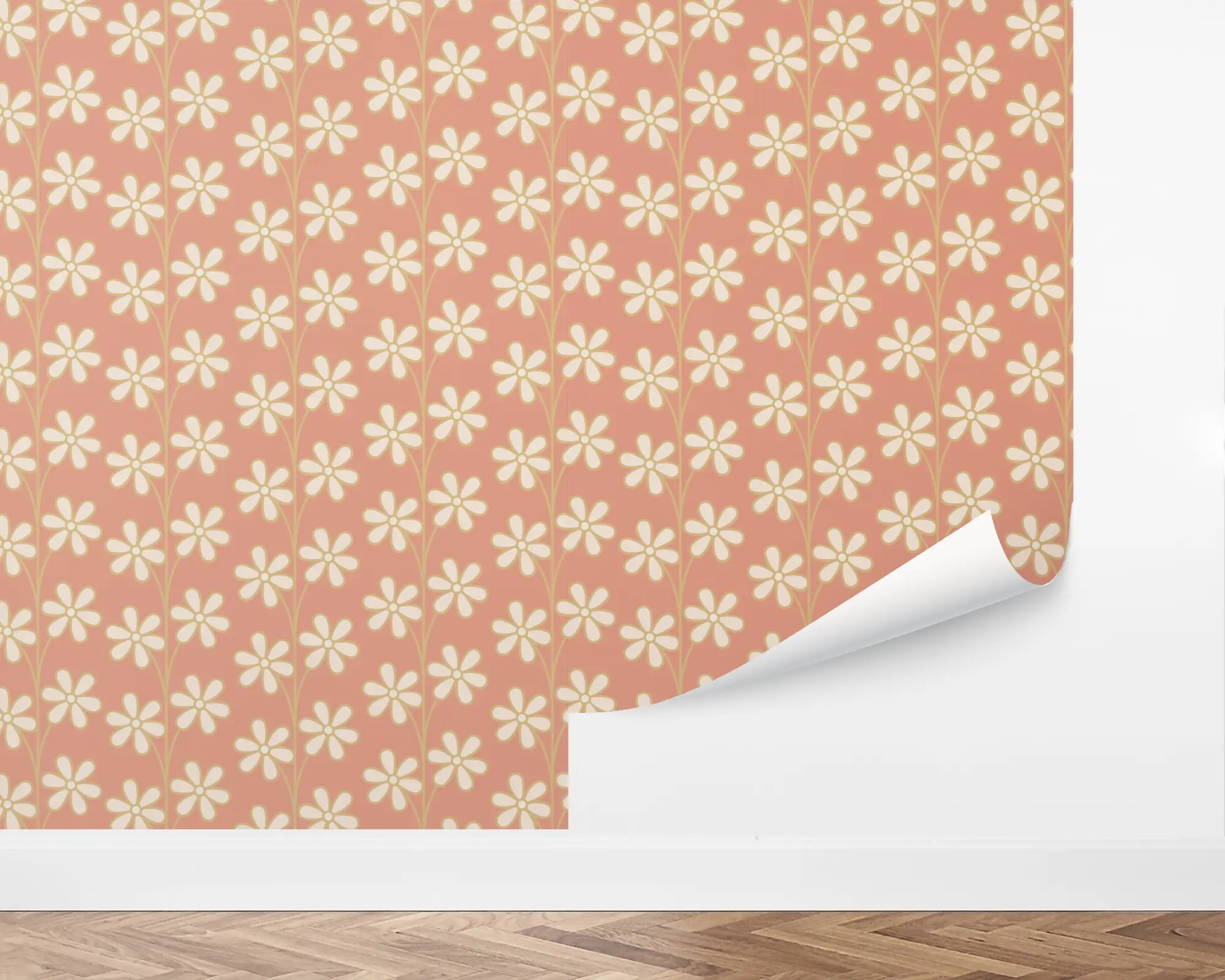 Our Daisy Dance Peel And Stick Removable Wallpaper add a touch of nature in a cute fashion to any wall in your home. Illustrations of grain flowers sprout from the bottom against a salmon background. Customize with endless color combinations to match the interior style of any room!