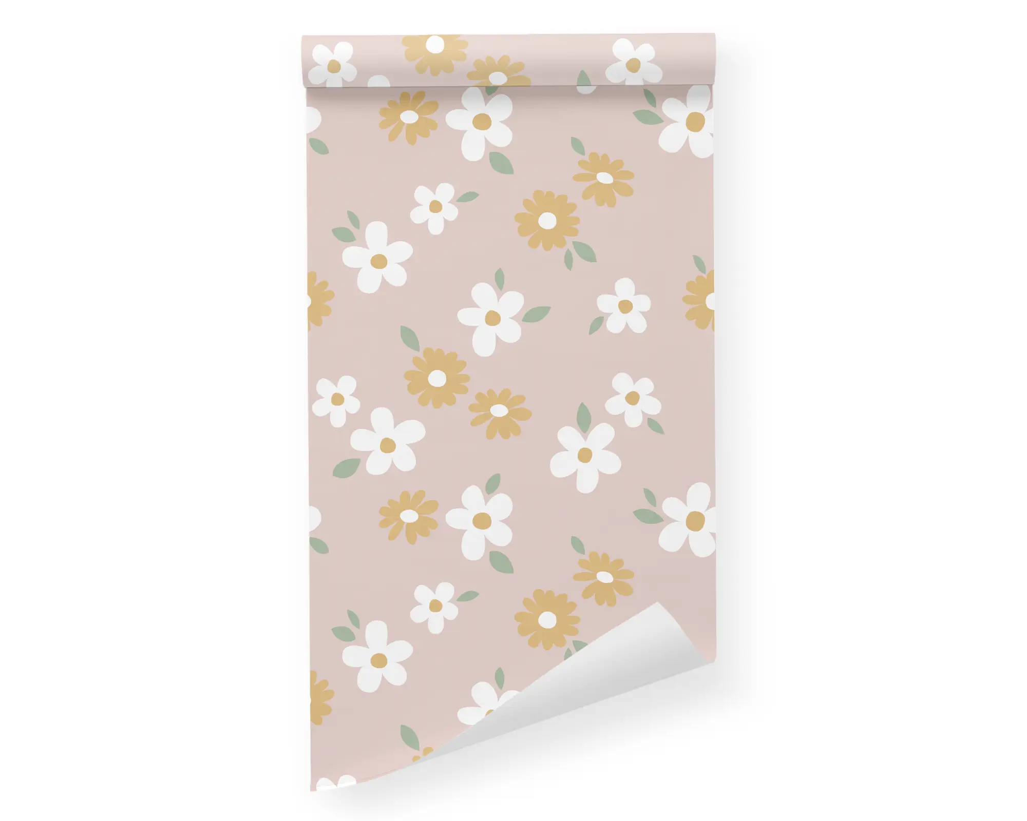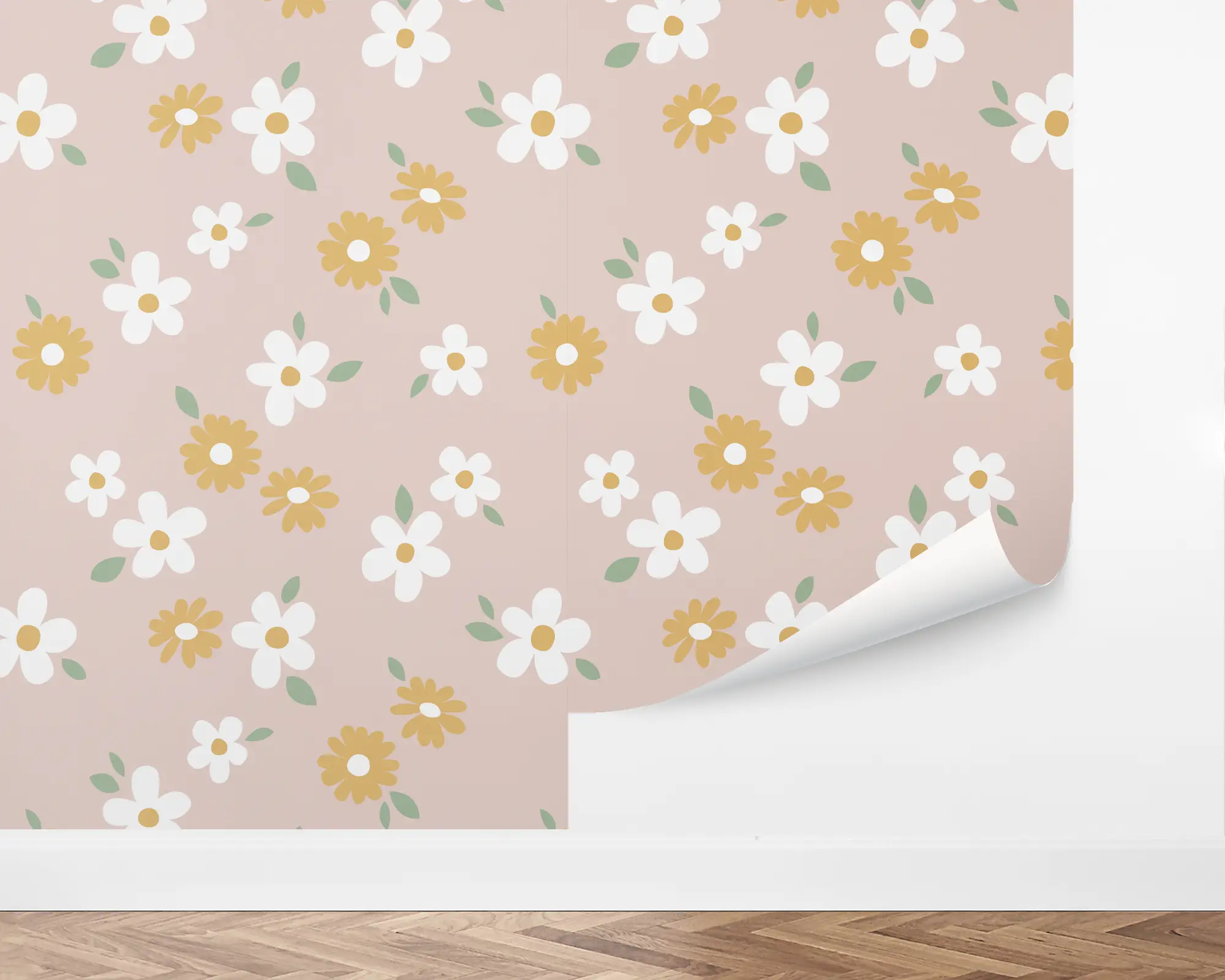 Plant a blossoming garden on any wall in your home with our Daisy Dreams Peel And Stick Removable Wallpaper. Illustrations of white and marigold flowers are sprouting on top of a dusty background. Personalize with your favorite combinations of colors to match your personal style perfectly!