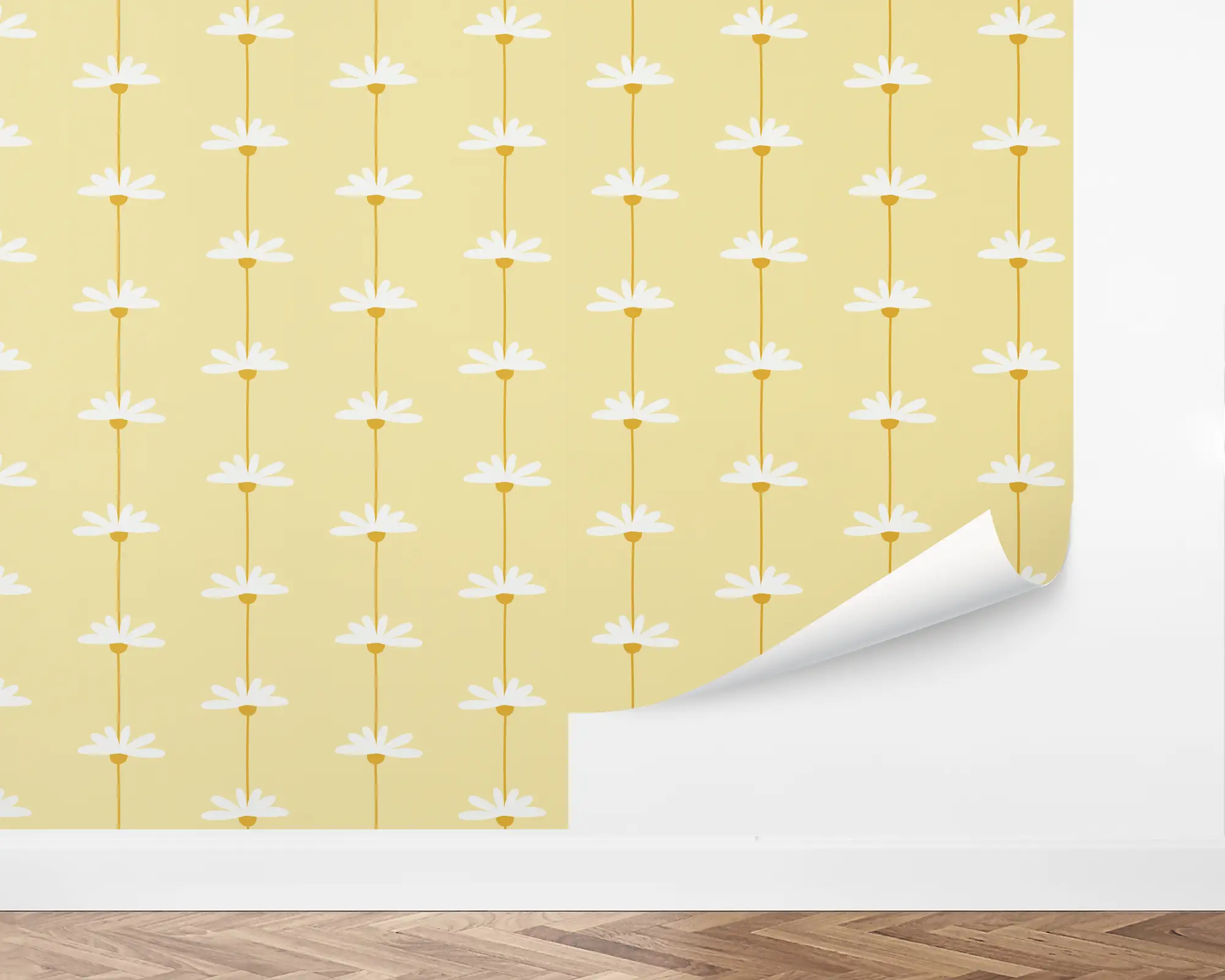 Create a playful, indoor garden with our Daisy Lines Wallpaper. This cute design features simple daisies stacked in vertical stripes over a colored background. Fully customizable with any of our beautiful colors, this wallpaper is sure to bring some life into any space.
