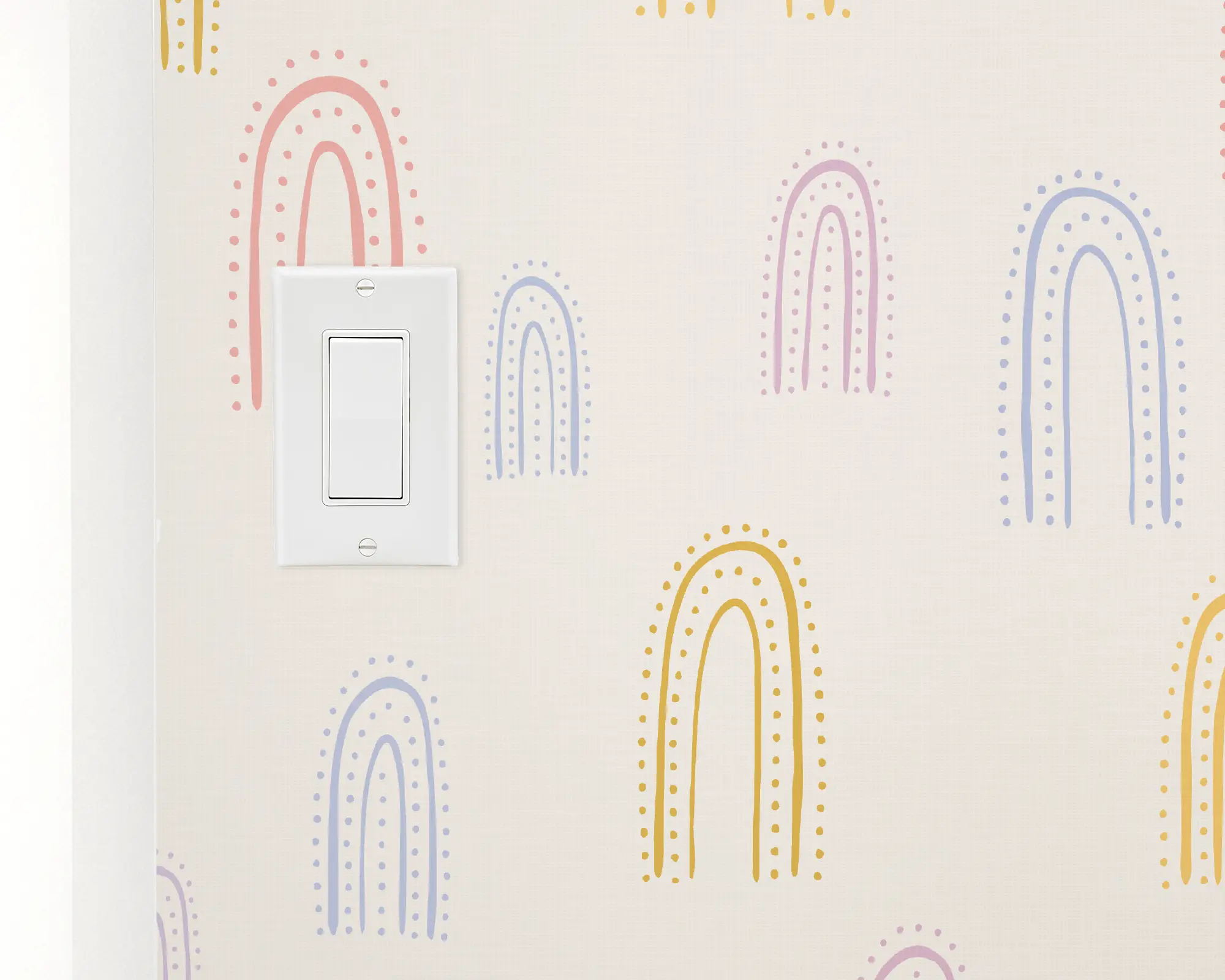 Our Dotted Rainbows peel and stick removable wallpaper will add a touch of happiness and joy to your child's room. Cute illustrations of spotted rainbows paint their way across a neutral-toned background. With so many color combinations to customize with, this is sure to create the room of your child's dreams.