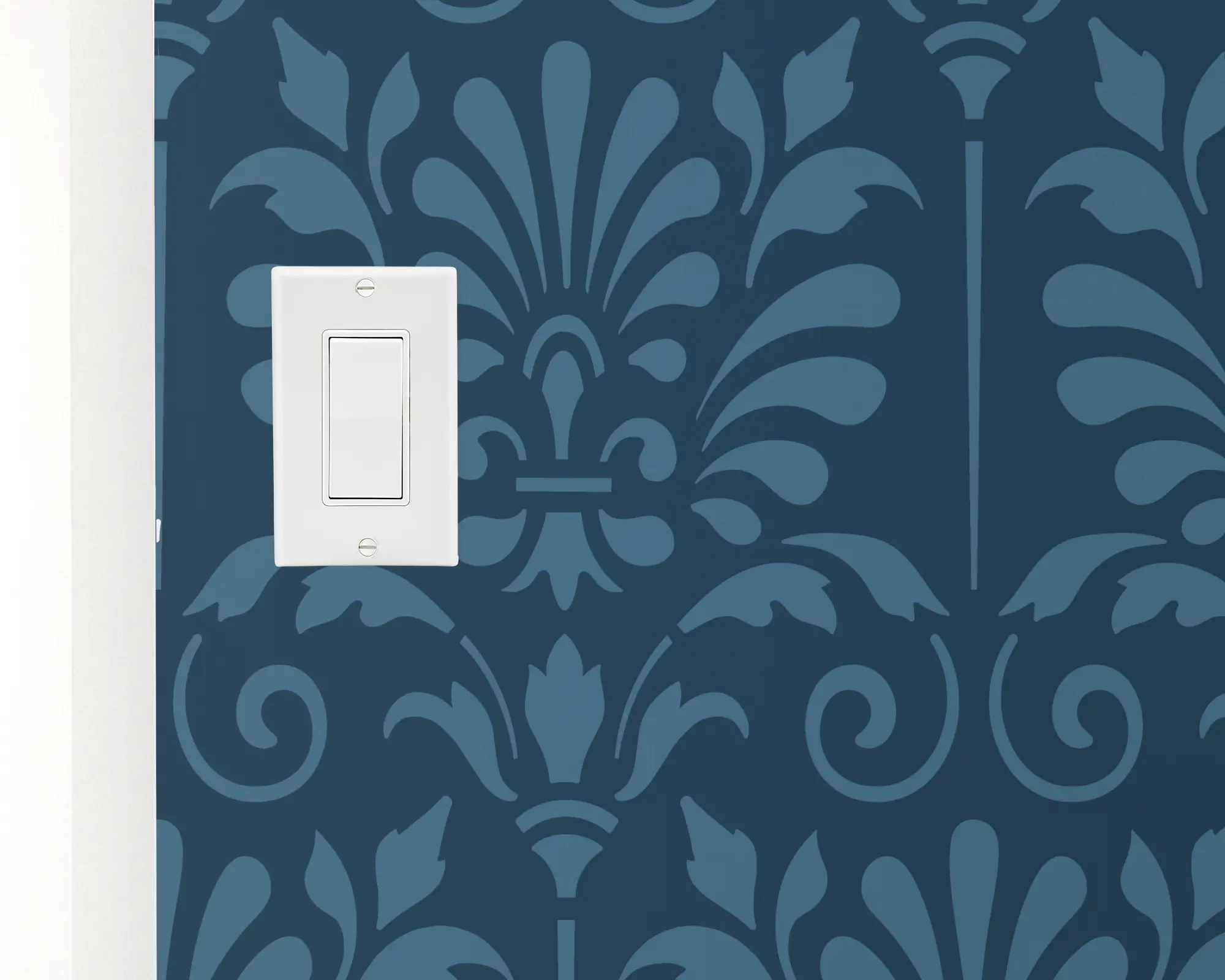 Create the perfect accent wall in any room with our Elegant Damask peel and stick removable wallpaper. This monochromatic pattern features a dark blue motif of damask-styled foliage. Personalize this with different color combinations to match your style perfectly!