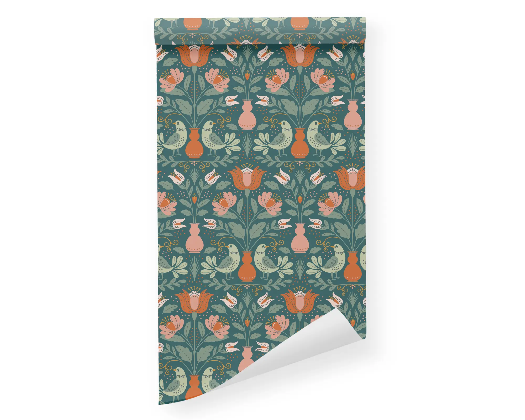 Give your home the cozy feeling it deserves with our Enchanted Swallow Peel and Stick Wallpaper. This charming design features a damask-like pattern of birds, bouquets, and flower vases. Fully customizable with any of our stunning colors, this wallpaper is the perfect way to give any space a hygge vibe.