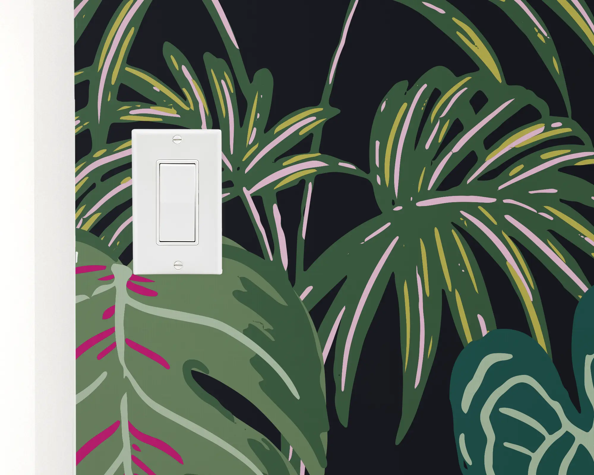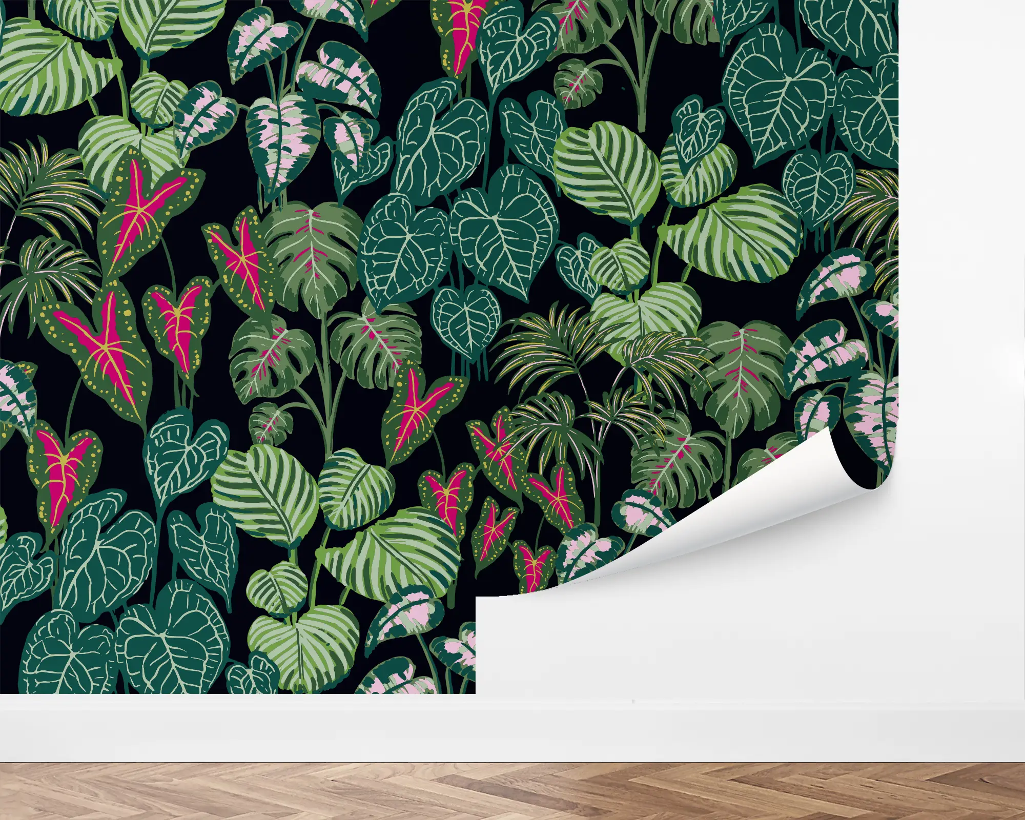 Create an exciting vibe with our Exotic Tropical Garden Peel and Stick Wallpaper. This fun design features a lush landscape of beautiful botanicals over a dark background. Fully customizable with any of our beautiful colors, this wallpaper is the perfect way to liven up your space.