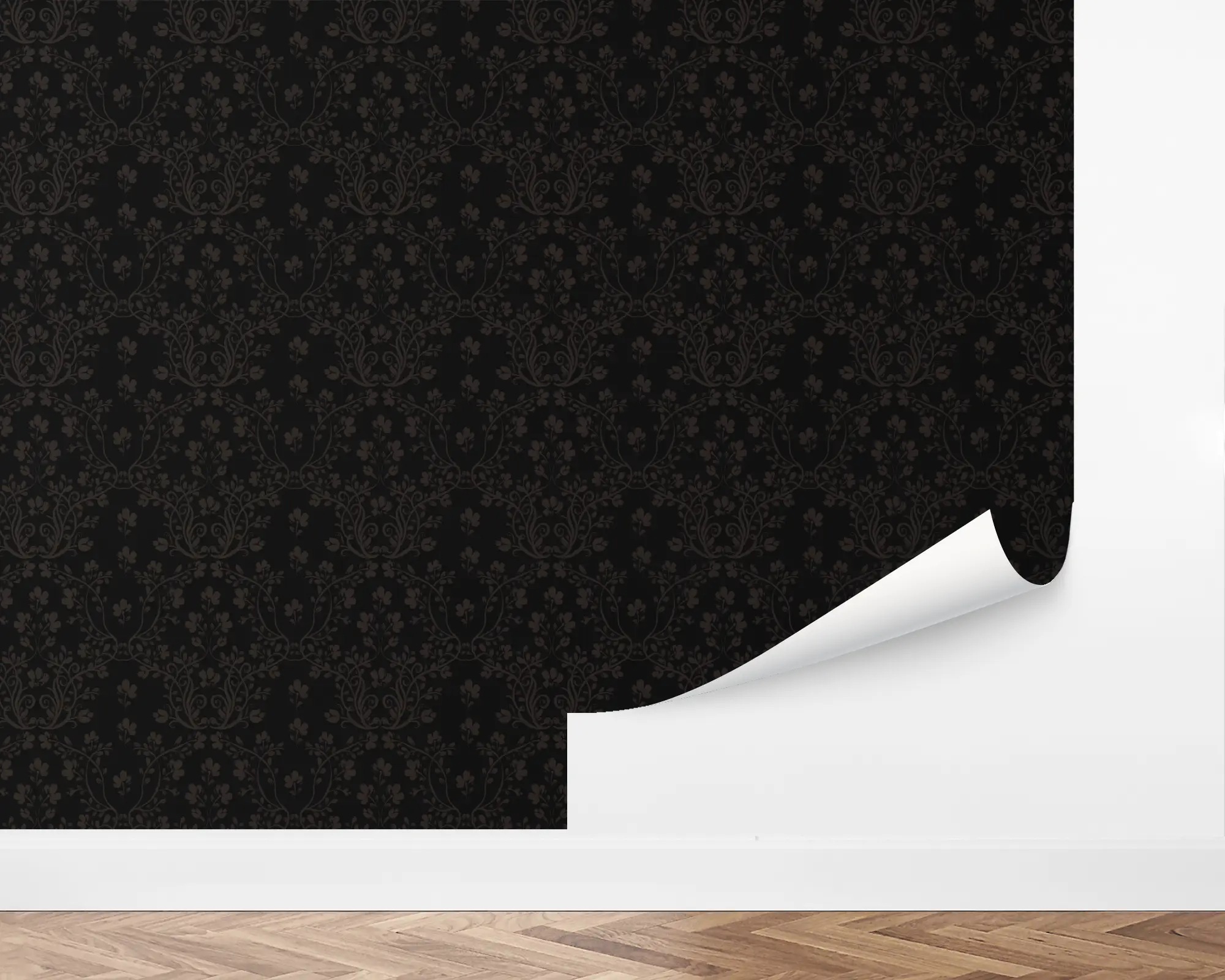 Our Fern Dell Peel And Stick Removable Wallpaper adds a touch of elegance to any wall in your home. Espresso illustrations of a botanical damask pattern swirl around a black background. Customize with endless combinations of colors to perfectly match your interior style!