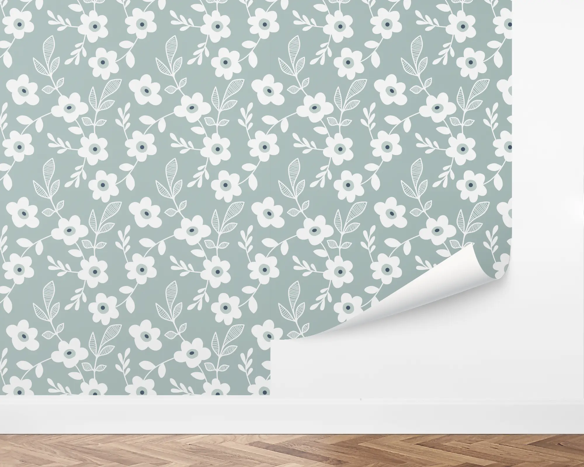 Our Flowing Florals Peel And Stick Removable Wallpaper are sure to make any wall in your home pop! White illustrations of florals sprout on a haven background, creating a flourishing garden. Choose endless color combinations to match your interior style!