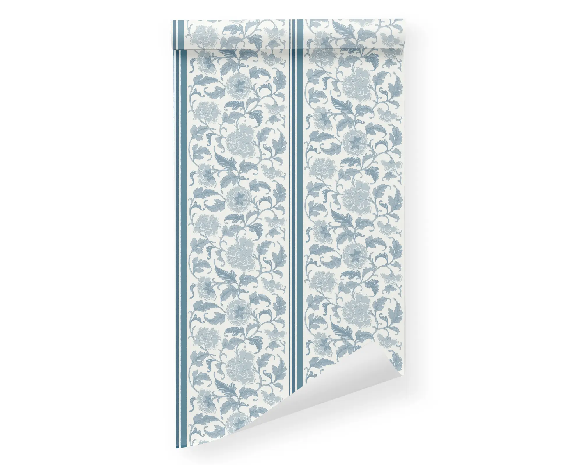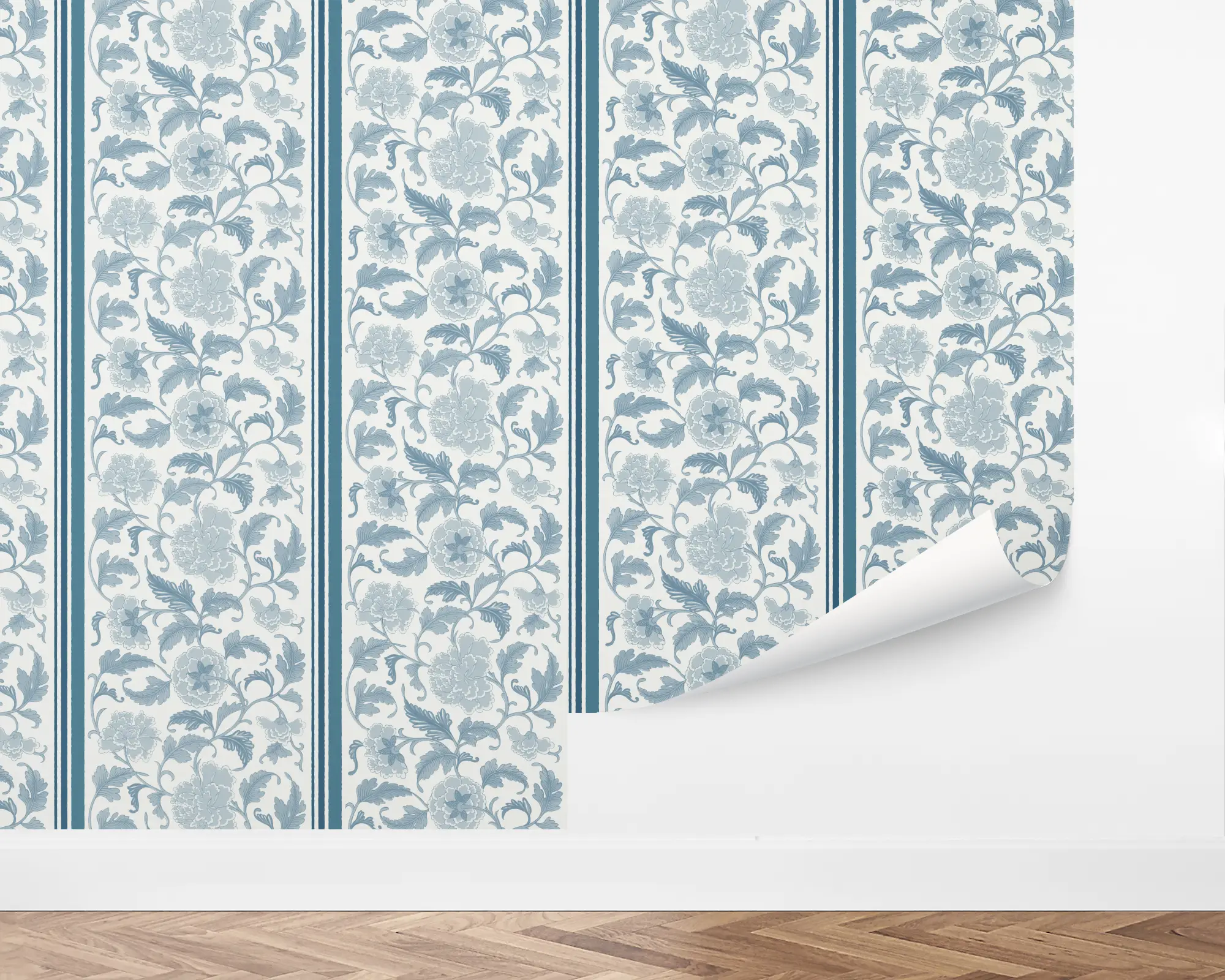 Elevate any room in your home by adding the vintage botanical look of our Flowing Flowers Peel And Stick Removable Wallpaper. Honest illustrations of peonies bloom in panels, separated by similarly colored stripes on a ceramic background. Customize with endless combinations of colors to match your unique style!