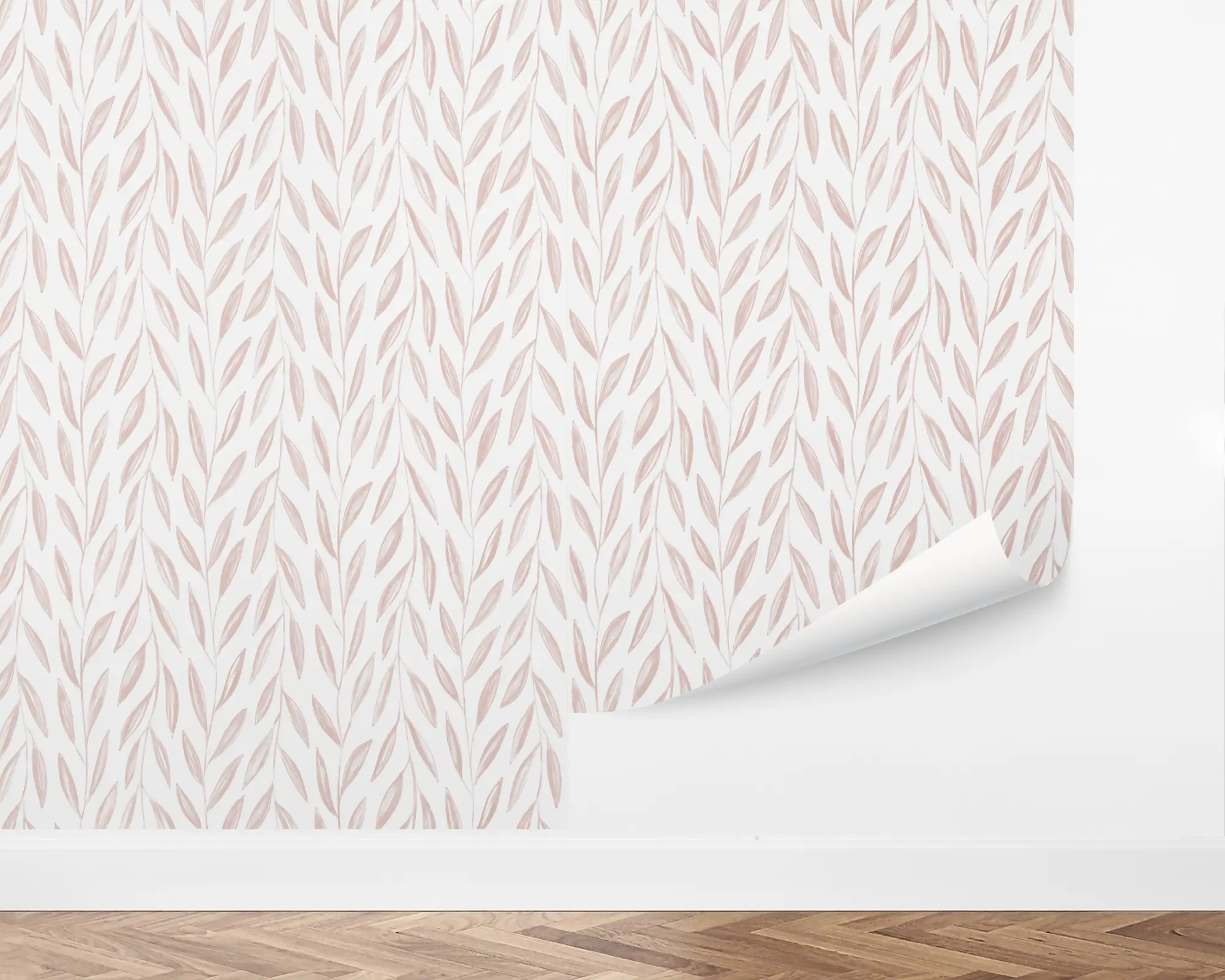 Bring the feel of greenery to any wall in your home with our Flowing Vines peel and stick removable wallpaper. Illustrations of pink vines climb up and down the white background. Customize with endless color combinations to match your interior style perfectly!