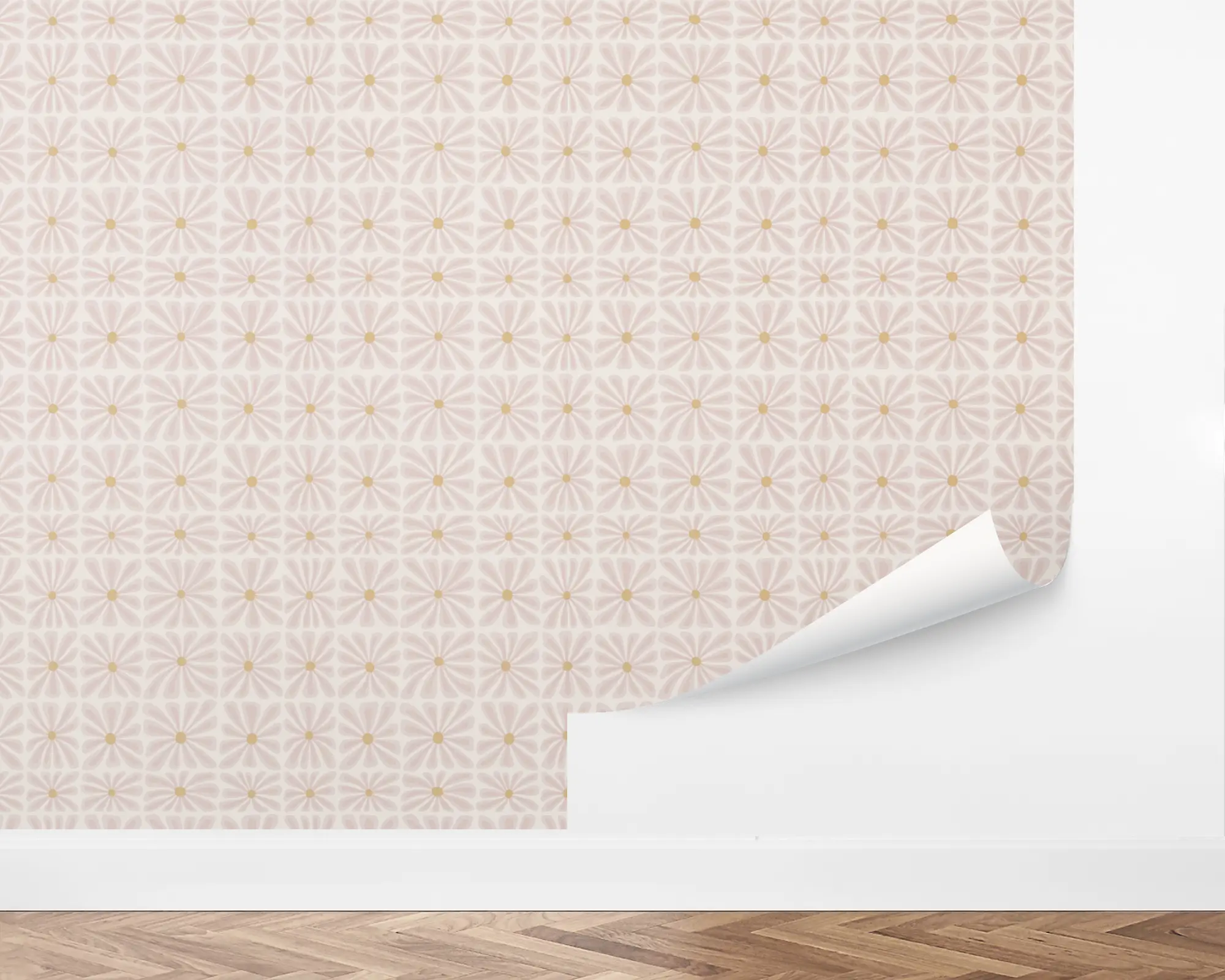 Our Fluid Florals Peel and Stick Wallpaper is sure to add a retro statement to any wall in your home. Sweet square flowers sprout in rows against an ivory background. Personalize with your favorite combinations of colors to be perfect!