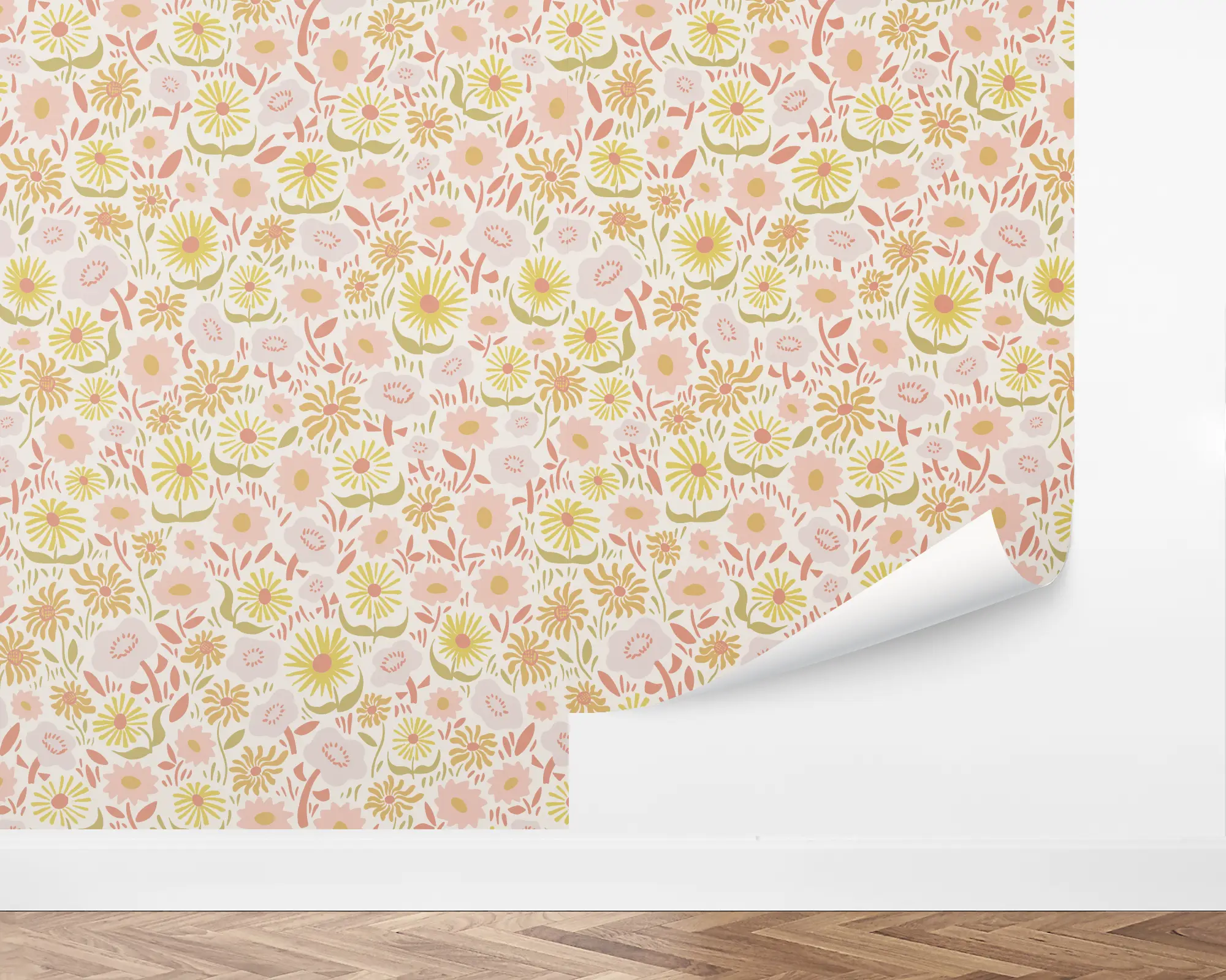Give any room in your house a blossoming touch-up with our Fresh As Daisies Peel and Stick Wallpaper. Multi-colored illustrations of flowers bloom on top of an ivory background. Choose from endless color combinations to match your interior style perfectly!