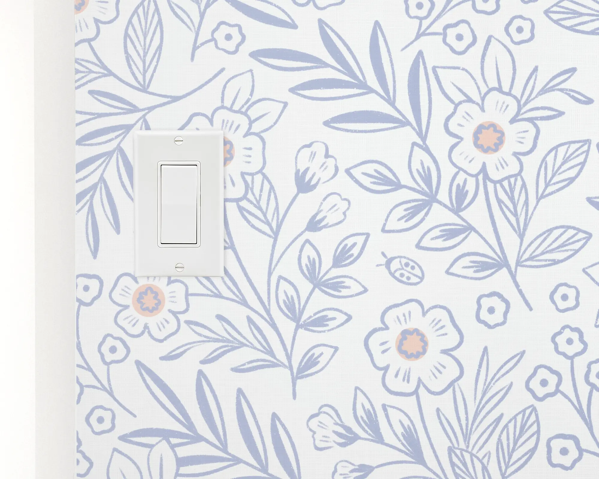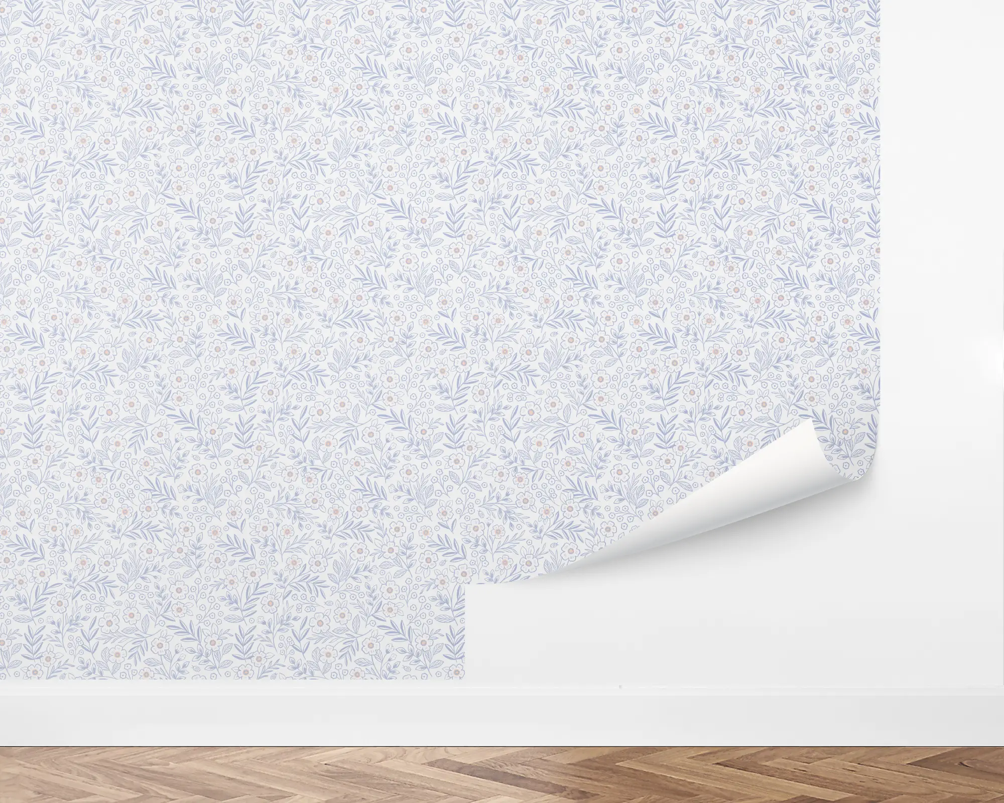 Design a soft, playful atmosphere with our Garden Flora Peel And Stick Removable Wallpaper. This design features a cascade of tiny purple blossoms drawn over a white background. Choose from hundreds of color combinations to make a statement on any wall!
