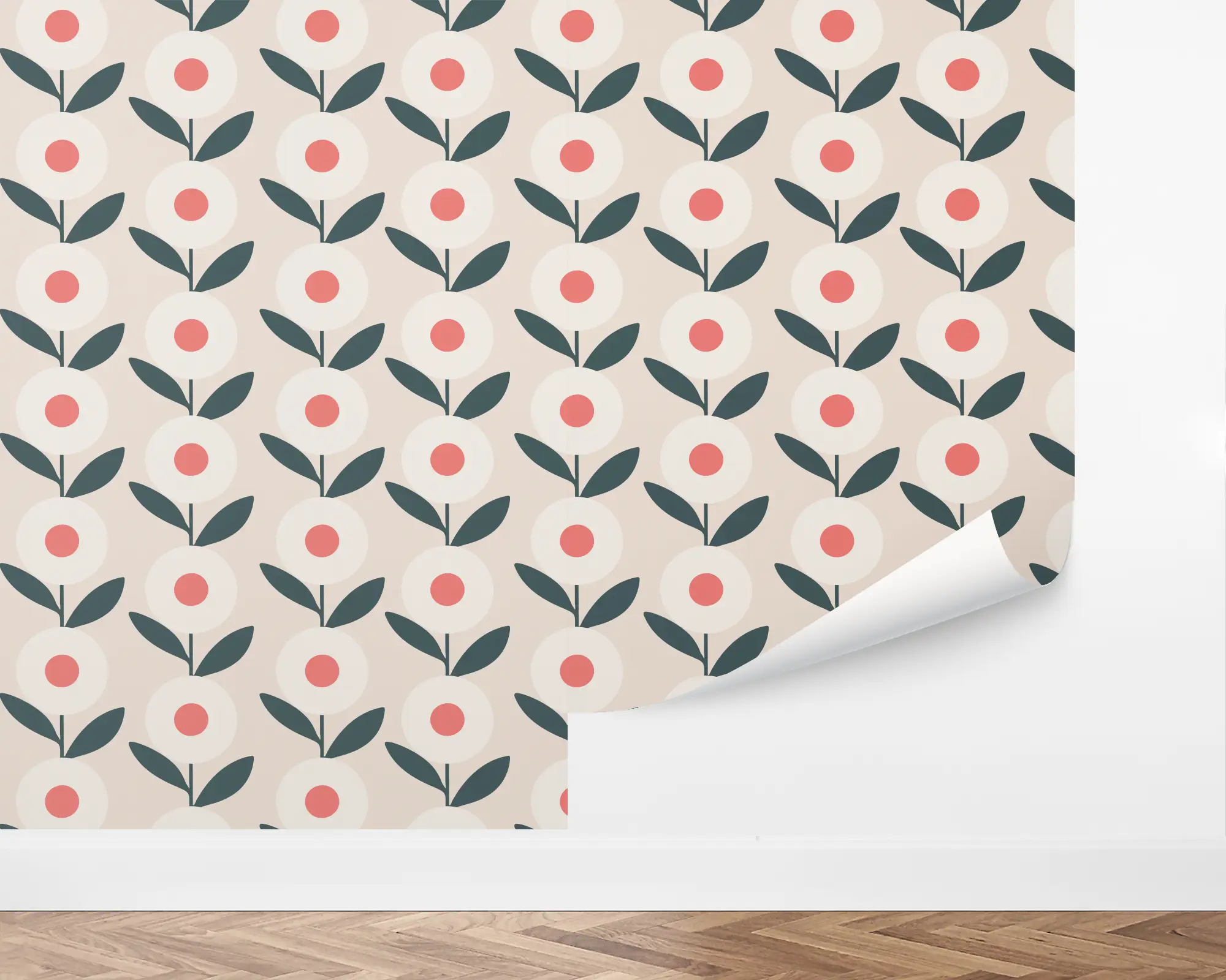 Add a cute floral accent to the interior of your home with our Geo Flower Peel And Stick Removable Wallpaper. This illustrated design features pink and ivory flowers with dark green leaves on a neutral background with a touch of blush pink. Customize this design to fit your personal style and match the feel of your home with any of our variety of color options!