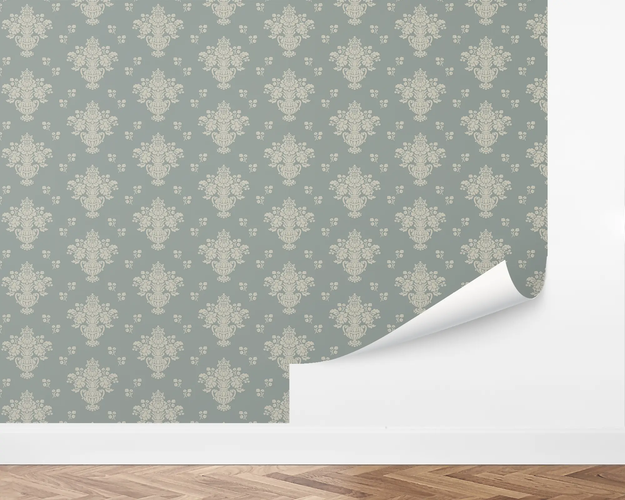 The Historic Damask Wallpaper brings timeless sophistication to your home with its classic damask pattern in soft taupe against a muted blue-gray background. Inspired by vintage manor interiors and traditional textiles, this elegant design adds quiet luxury to bedrooms, dining rooms, or study spaces. Easy to install and removable, this peel and stick wallpaper transforms any wall into a refined statement piece—perfect for both modern and classic homes.