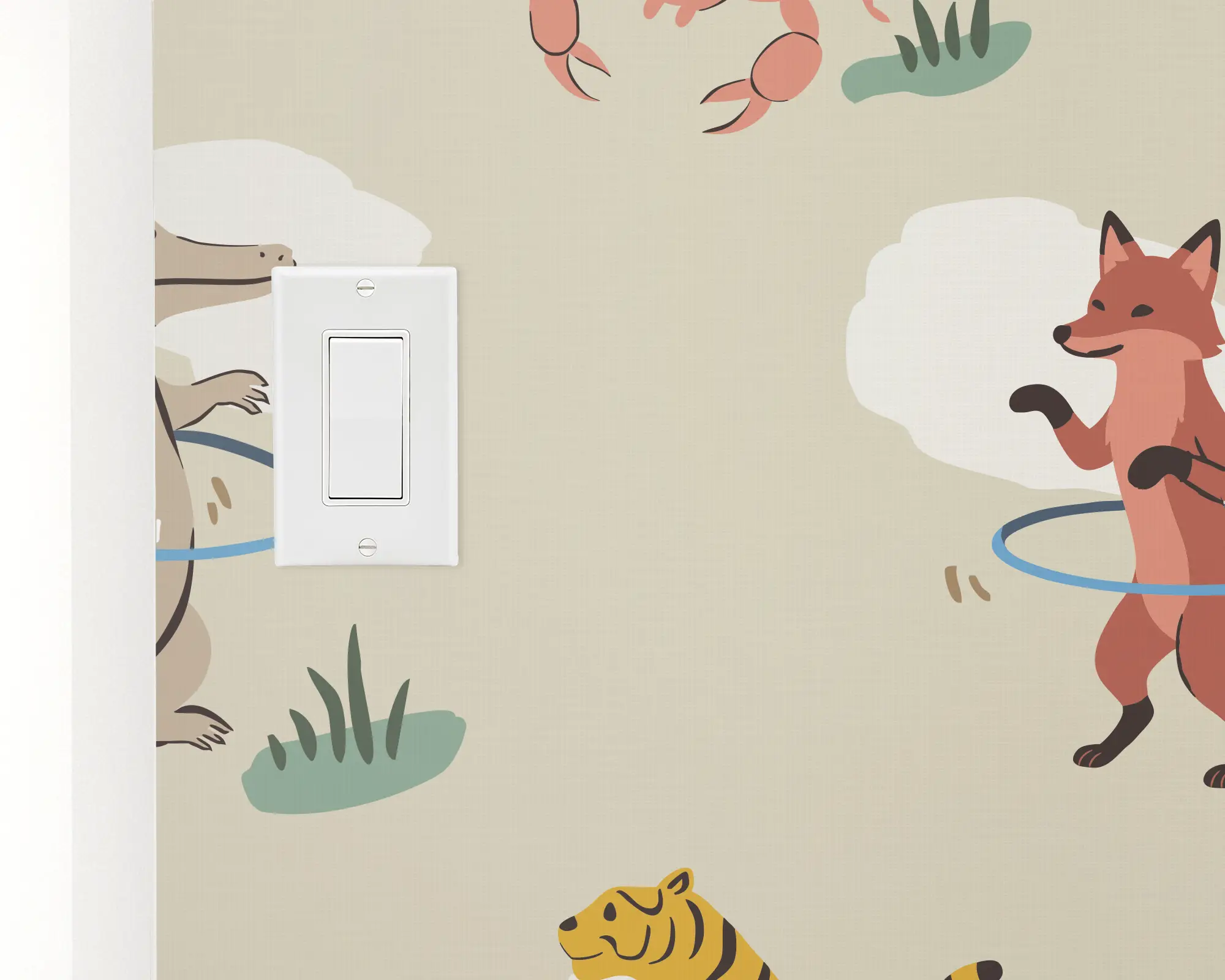 Bring playful charm to your walls with our Hula Animals wallpaper, featuring whimsical illustrations of dancing jungle animals wearing grass skirts and leis in soft red, yellow, and neutral tones on a beige background. This fun, imaginative design is perfect for kids’ bedrooms, nurseries, or playrooms, creating a lively tropical vibe that sparks joy and creativity. With its colorful character-filled design and easy peel-and-stick application, this wallpaper makes decorating effortless and fun.