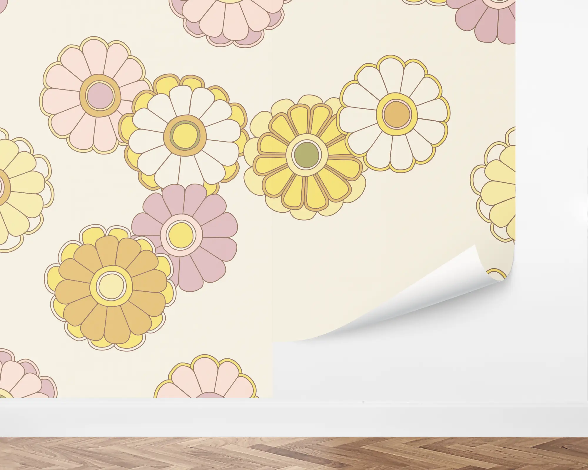 Our Large Daisies Peel And Stick Removable Wallpaper add a retro garden touch to your home. Colorful illustrations of flowers sprout up on top of a light background. Make the perfect statement on your wall when you customize this with your own color combinations!