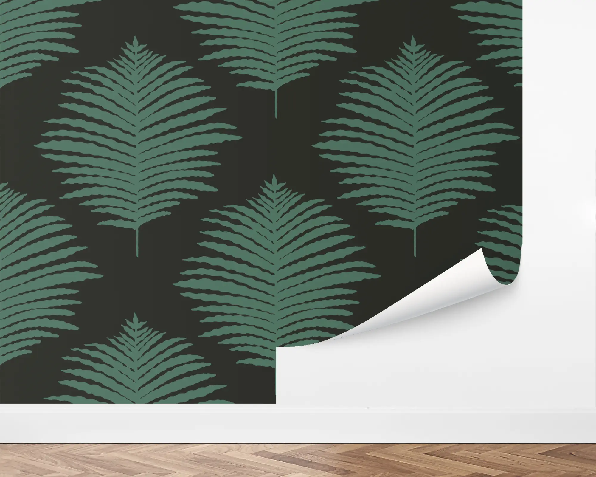Transform any room in your home into a tropical oasis with our Large Fern peel and stick removable wallpaper. Illustrations of green foliage pop against the charcoal background. Explore endless color combinations to match your interior perfectly!