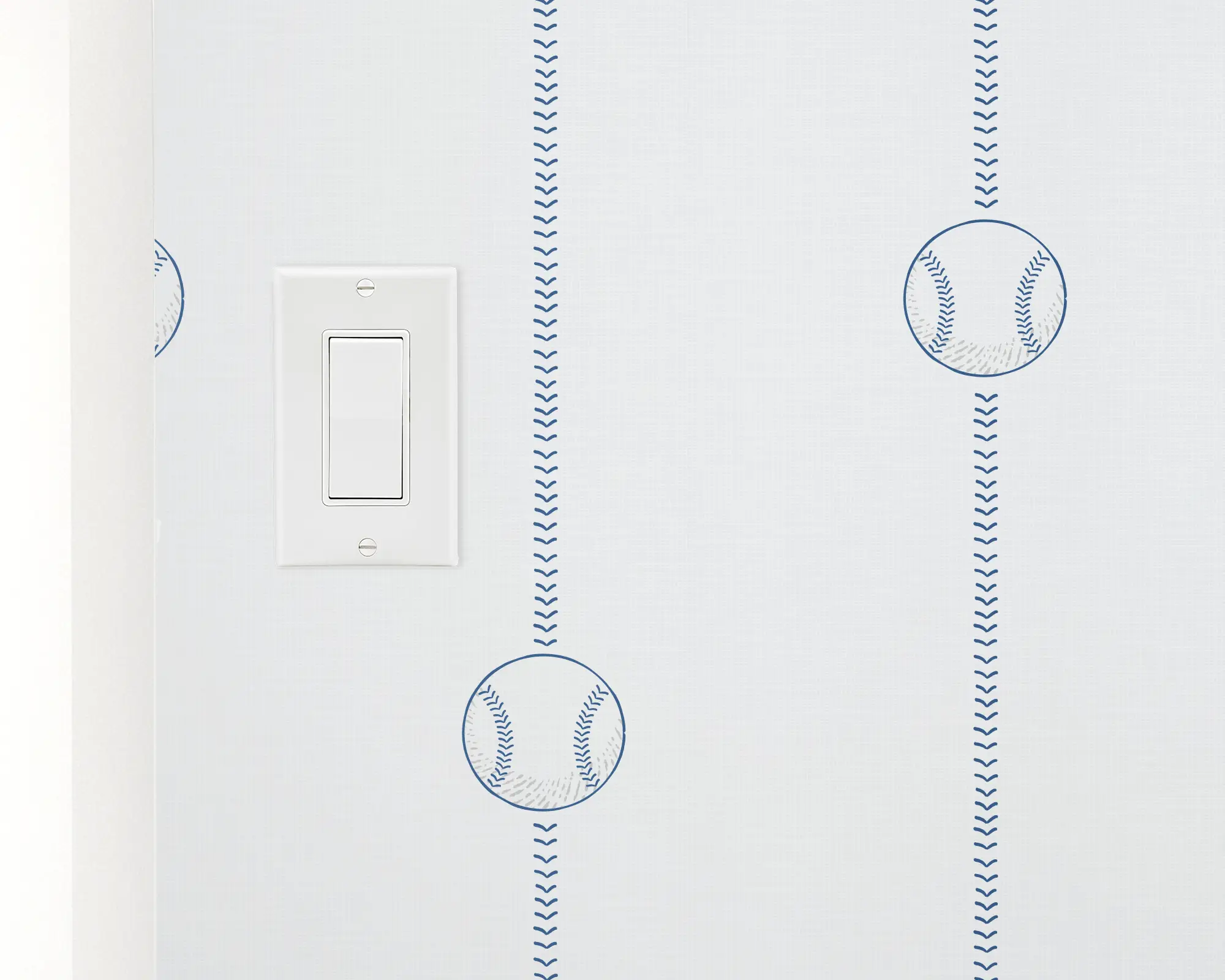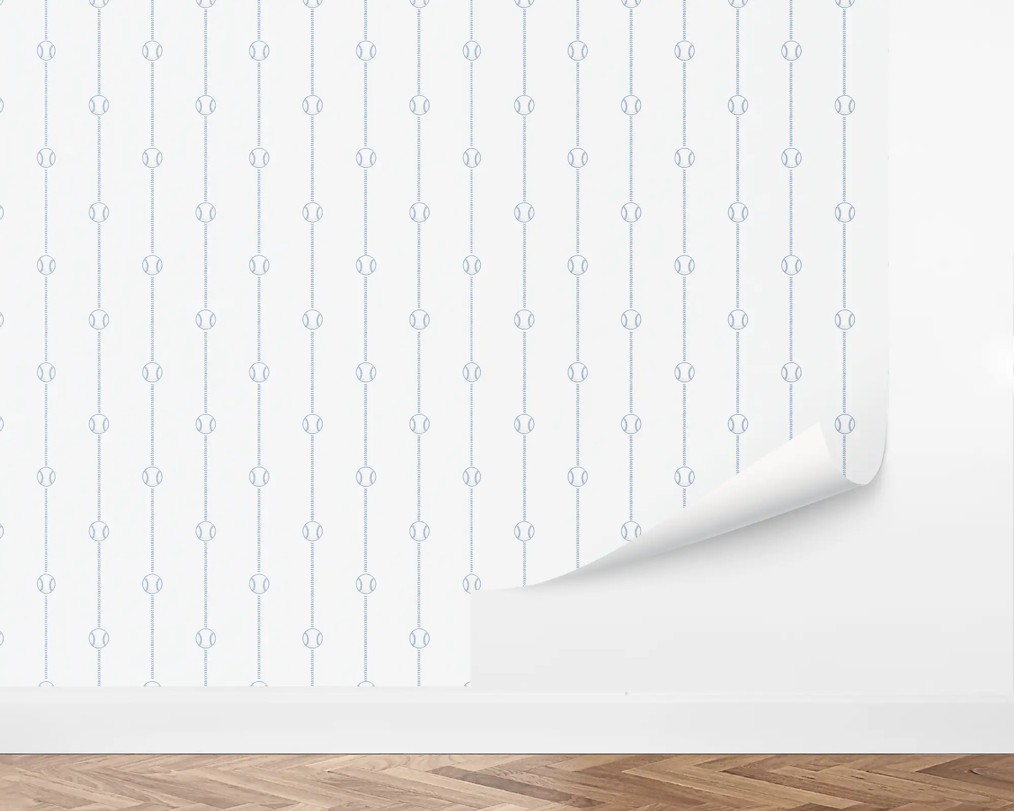Celebrate your love of the sport in a classic, simple way with our Let's Play Ball Peel and Stick Removable Wallpaper. This minimalist design features outlined baseballs and stitching arranged in neat stripes over an off-white background. Customizable with any of our gorgeous colors and paper types, this wallpaper is perfect for the little athlete in your life.