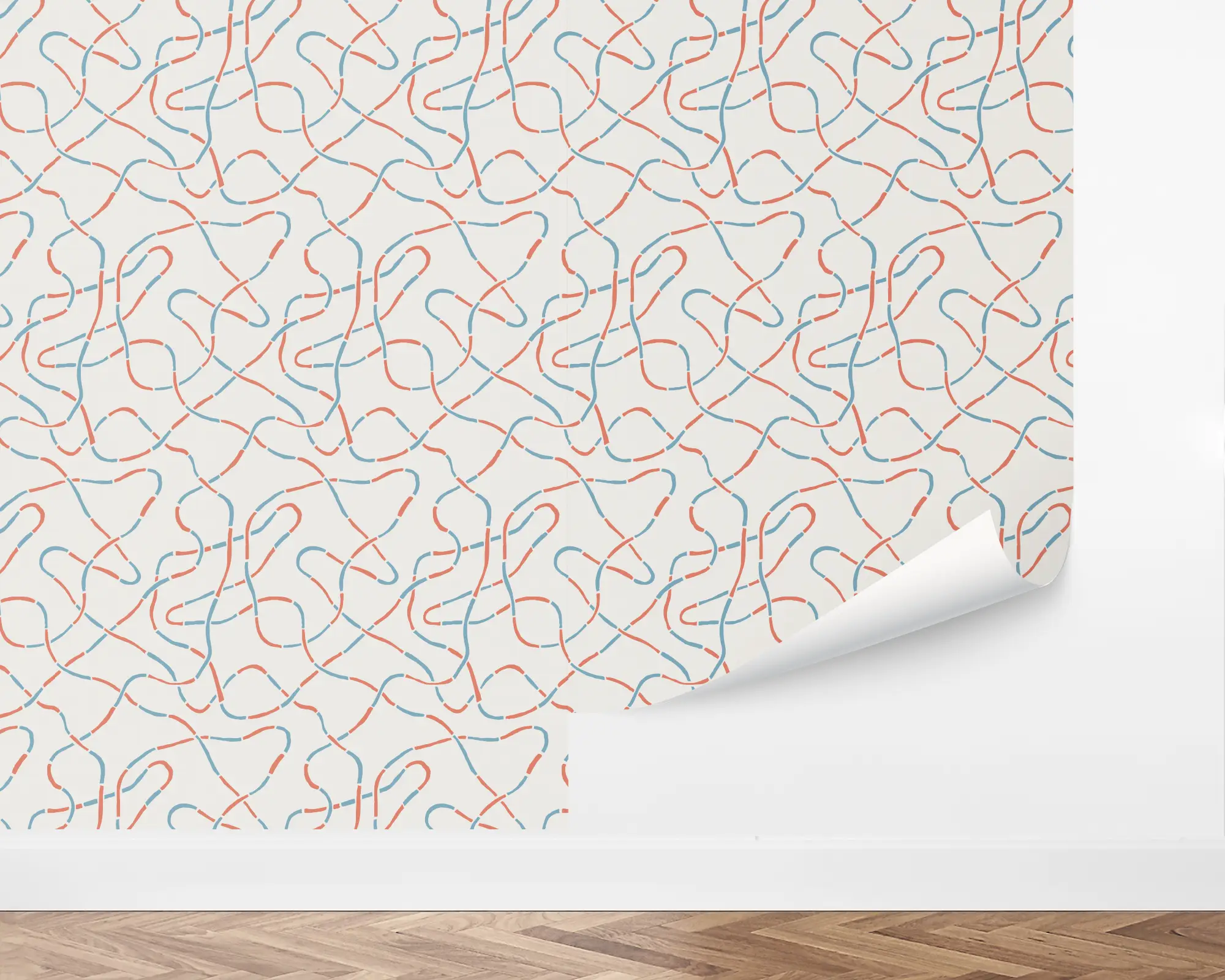 Add a fun vibe to any kid's room or play area with our Linked Pathways Peel And Stick Removable Wallpaper. This whimsical design features alternating red and blue lines twisting playfully over a neutral background. Fully customizable with any of our beautiful colors, this wallpaper is the perfect way to inspire imagination.
