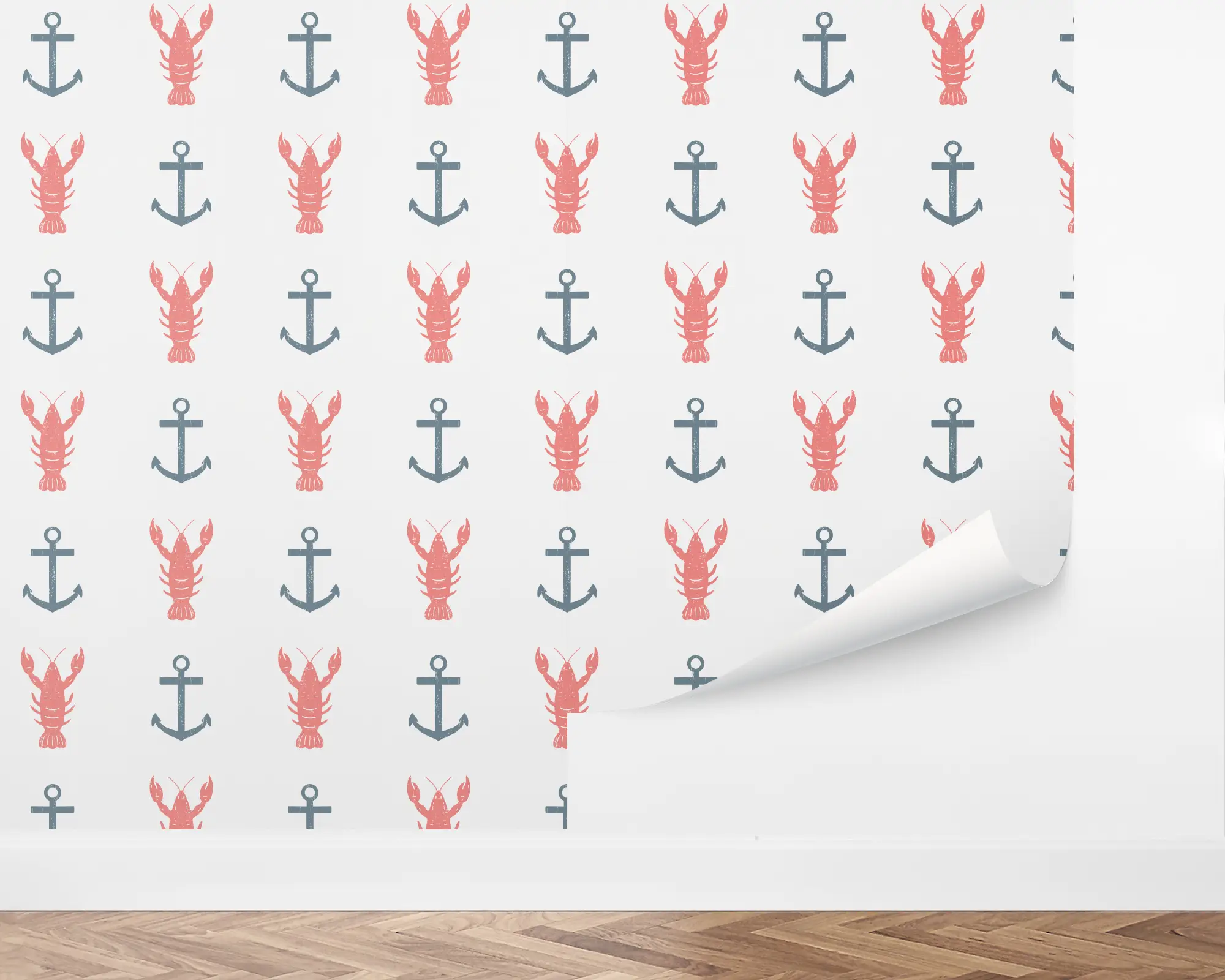 Add a nautical statement to any wall in your home with our Lobsters & Anchors Peel and Stick Wallpaper. An alternating pattern of anchors and lobsters is stamped on top of a white background. Personalize with different color combinations to match your personal style perfectly!