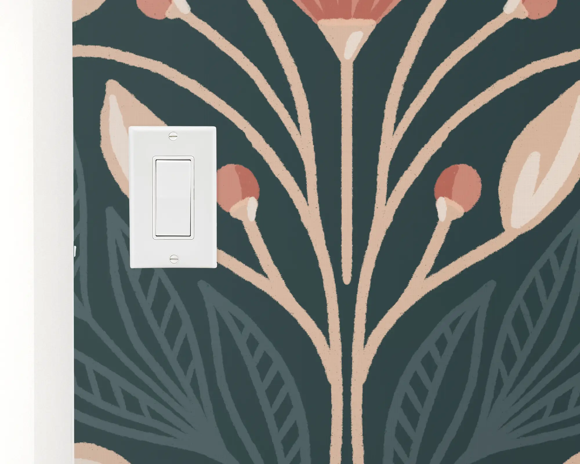 Create a whimsically enchanting experience in any room with our Meadow Damask Wallpaper. This playful design features charming, symmetrical floral designs over a dark green background. Fully customizable with any of our stunning colors and fonts, this design is the perfect way to give any space a new look.