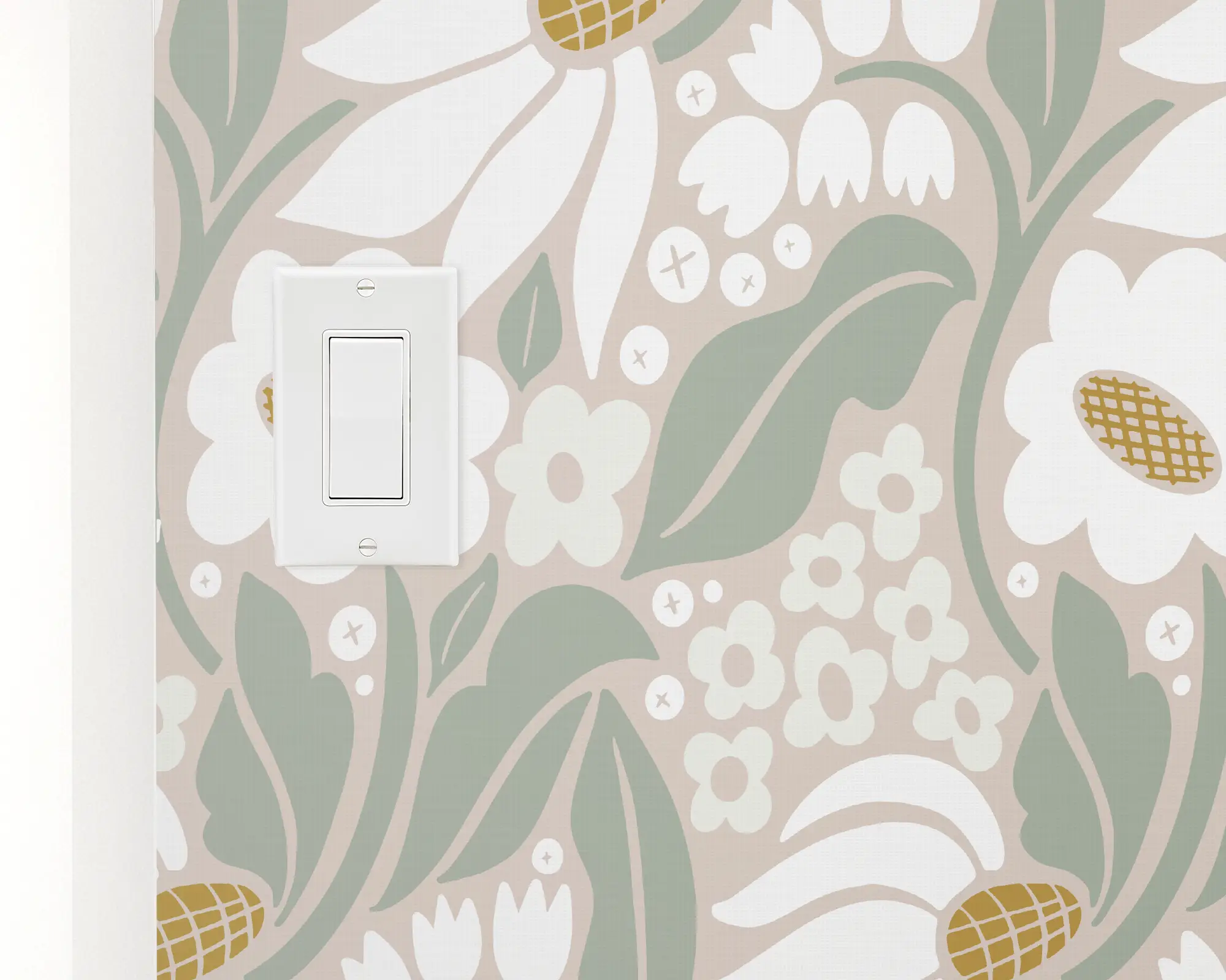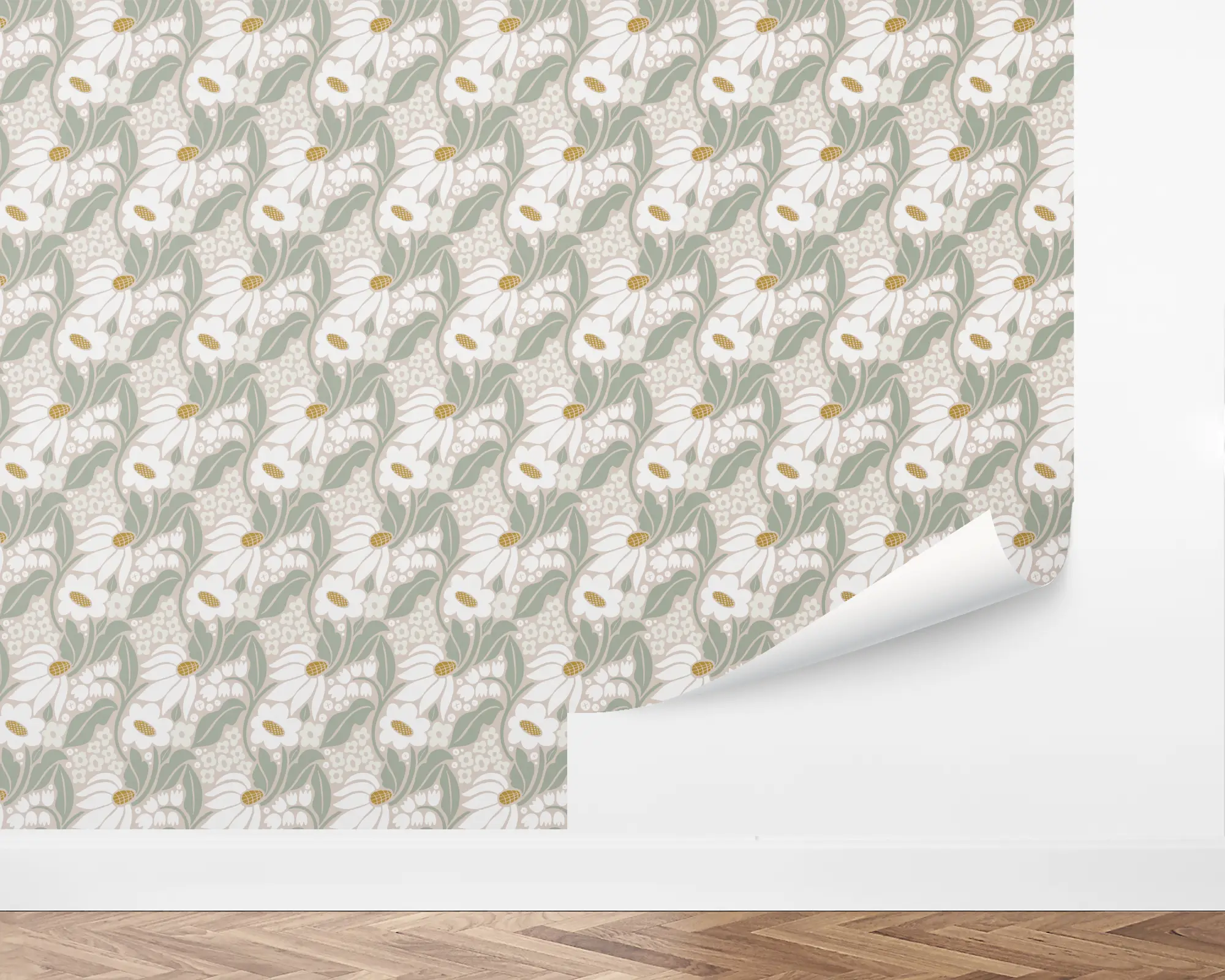 Add a neutral floral pattern to any room with our Mod Blooms Peel And Stick Removable Wallpaper. This modern floral design features a variety of bright white flowers dancing on a pastel background. Fully customizable with any of our stunning colors, this design is the perfect pop of pattern for your home.