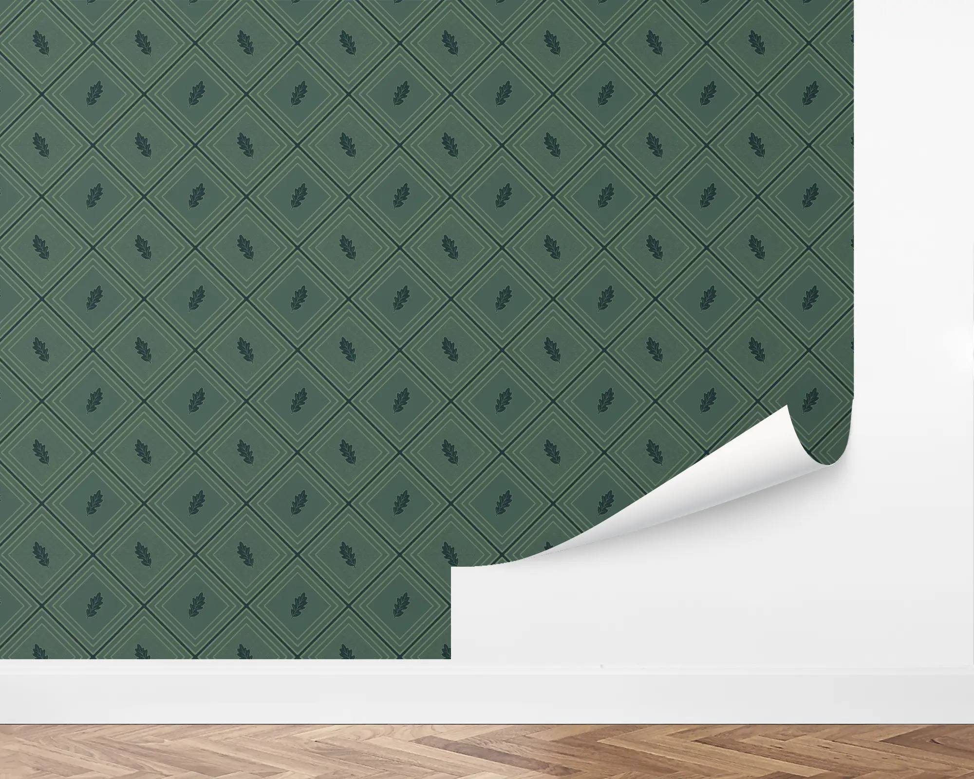 Add the touch of greenery to any wall in your home with our Oak Leaf Diamonds Peel and Stick Wallpaper. Simple, velvet illustrations of foliage are placed inside of an Irish diamond pattern. Customize with your favorite combinations of colors to match your style perfectly!