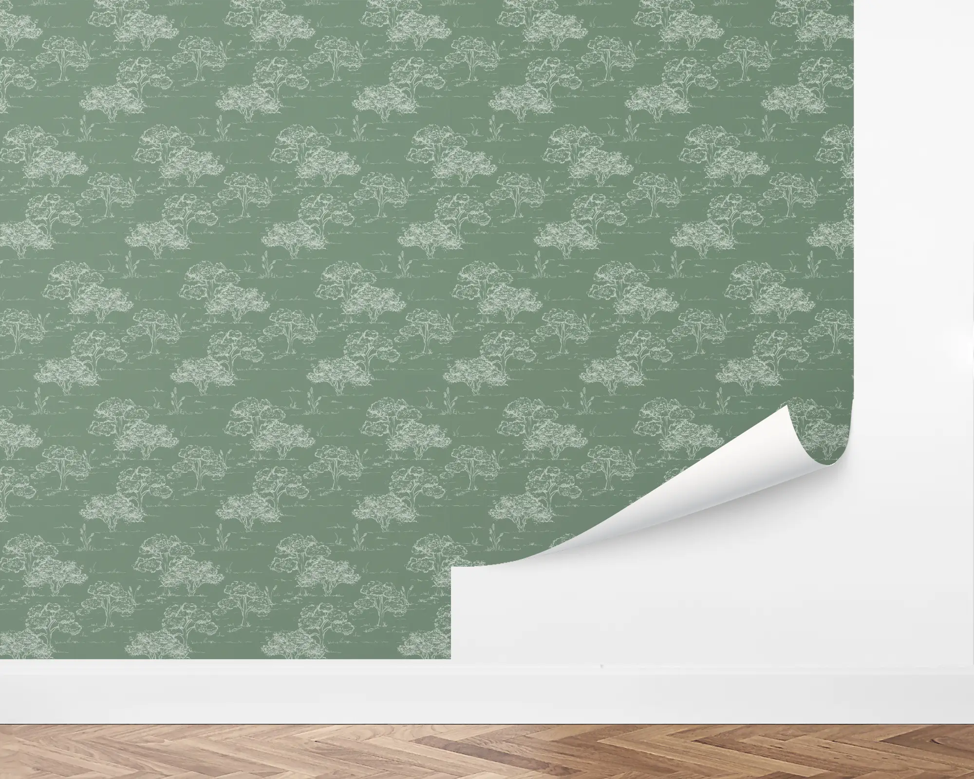 Create an adventurous park on any wall in your home with our Owings Mills Peel and Stick Wallpaper. Illustrations of ceramic trees are planted on top of a kale, grassy background. Personalize with your favorite color combinations to match your interior style perfectly!