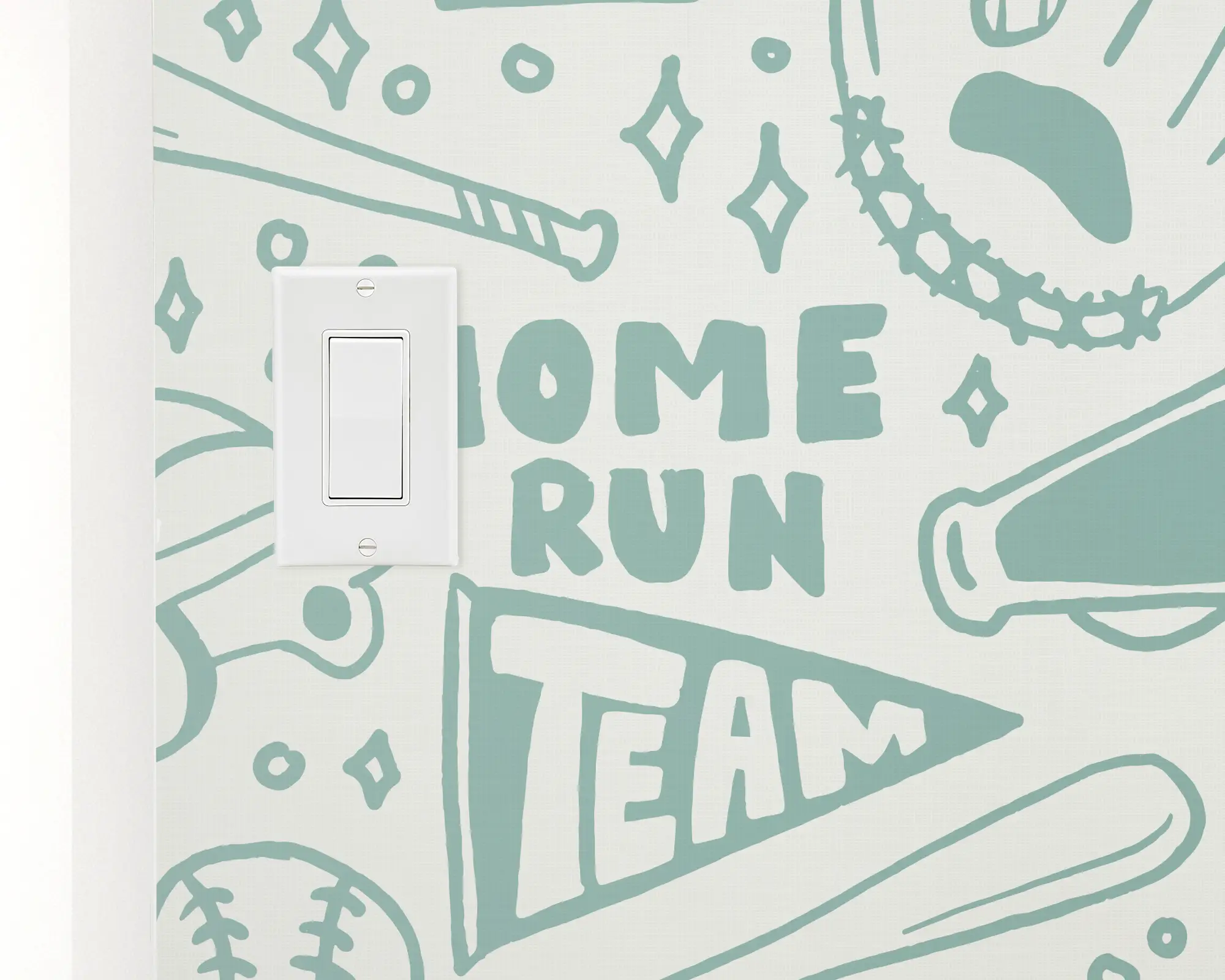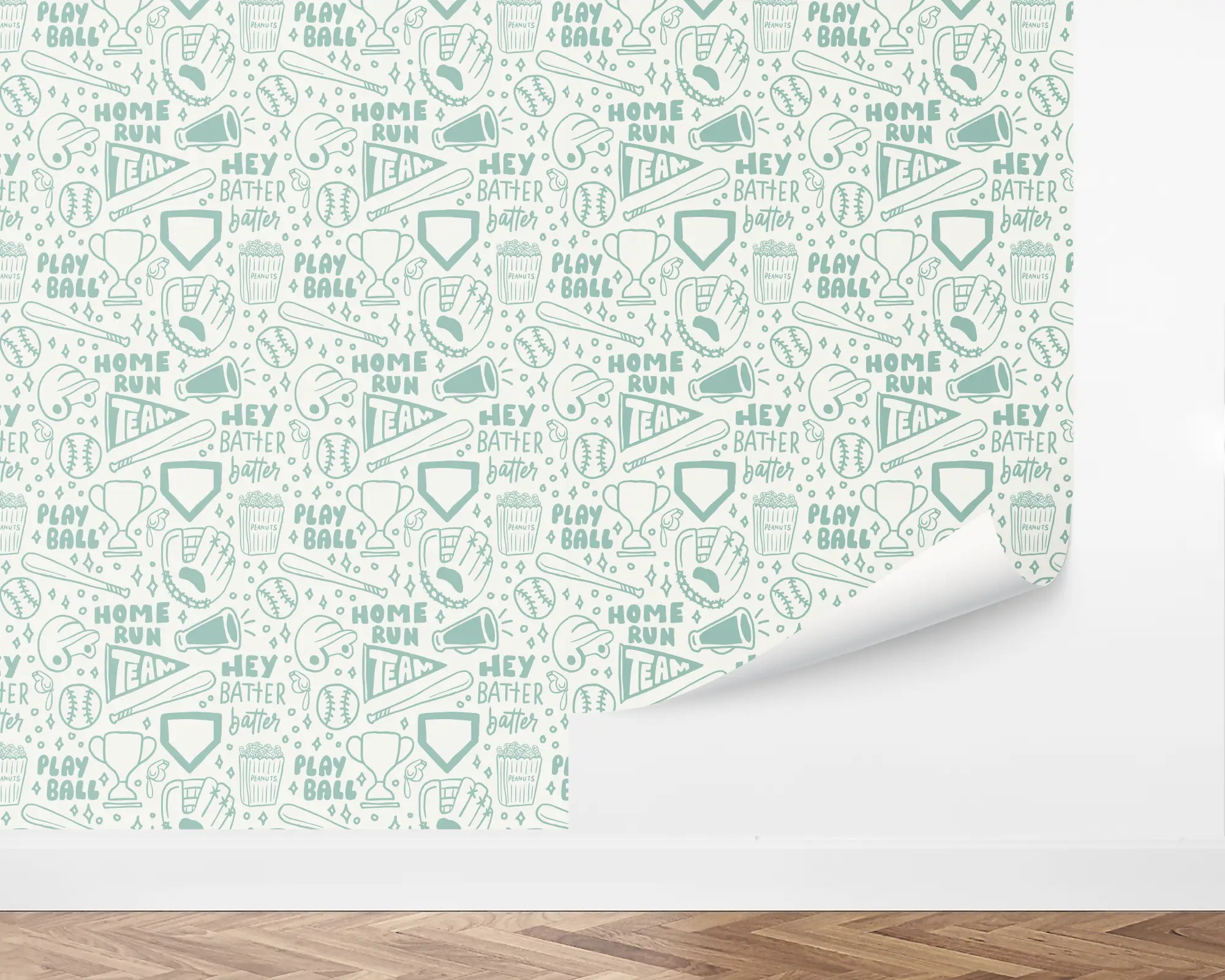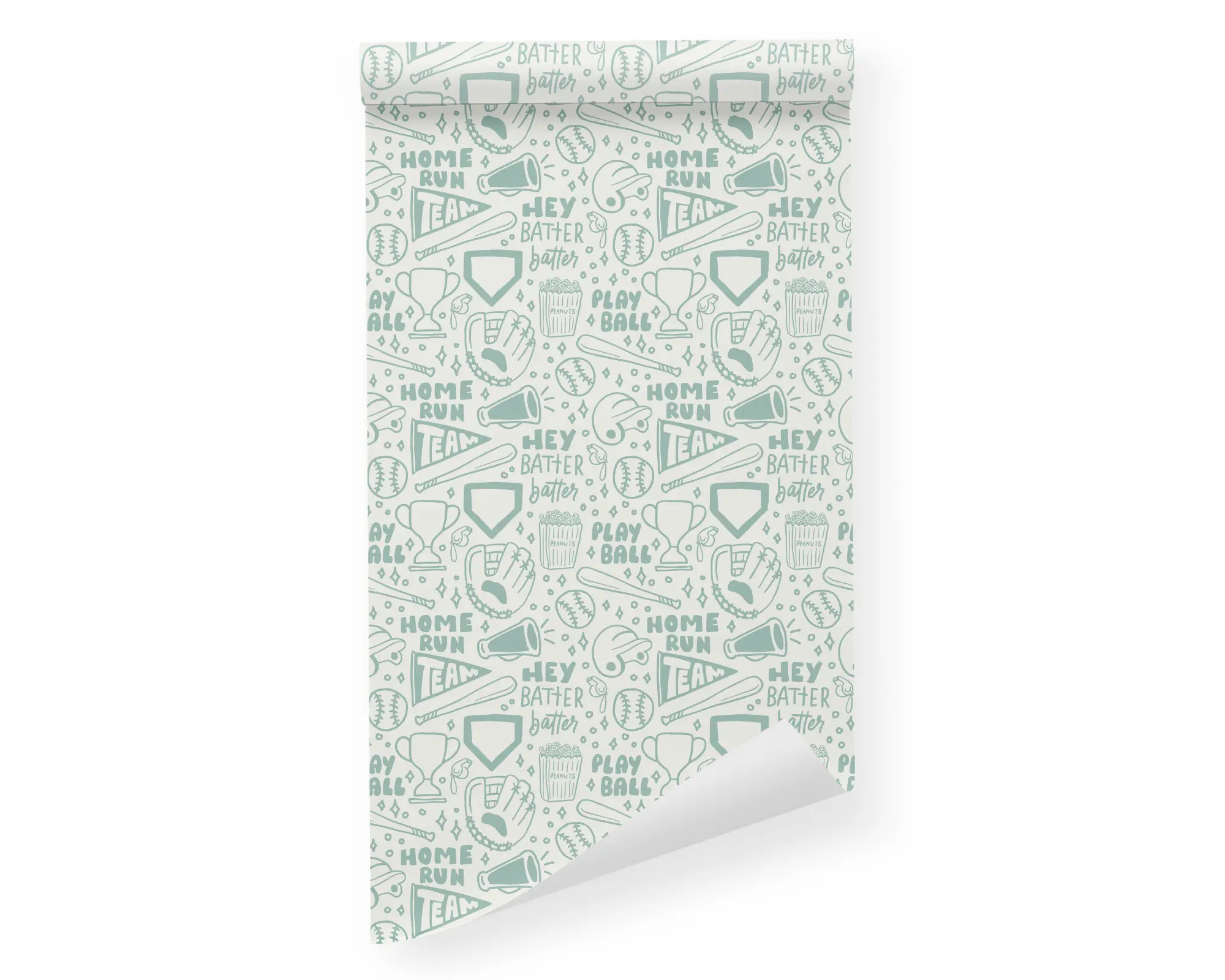 Bring the ballpark home with our Play Ball Peel and Stick Removable Wallpaper. This fun design features all the fun of a live baseball game— the gloves, the bats, the cheers, and even the stadium snacks. Fully customizable with any of our striking colors, this wallpaper is perfect for any kid's room or play area.