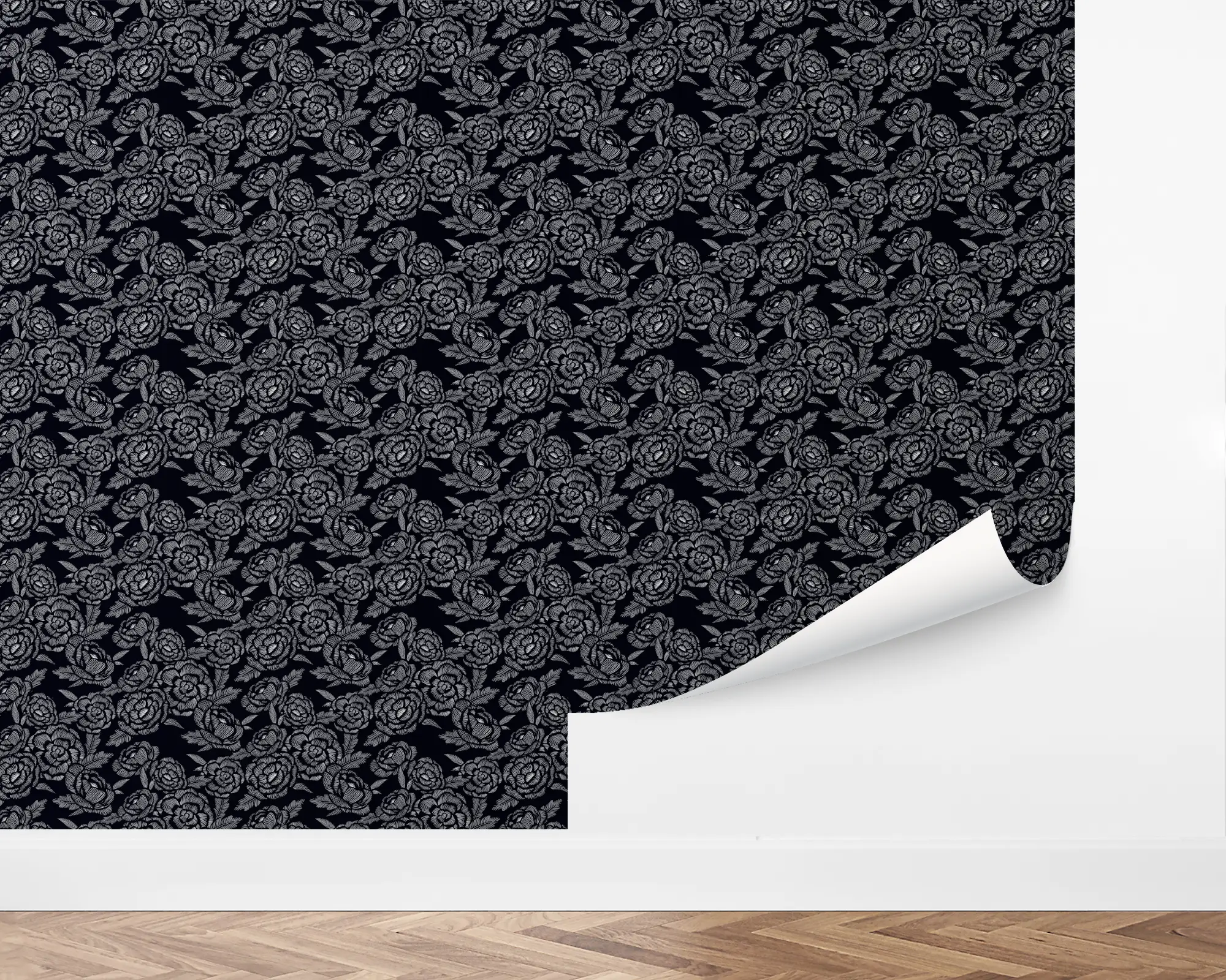 Create your perfect living space with our Poppy Harvest Peel And Stick Removable Wallpaper. This design features an ensemble of embroidery-style, white blossoms over a black background. Fully customizable with any of our beautiful colors, this design is perfect for inventing your dream room.