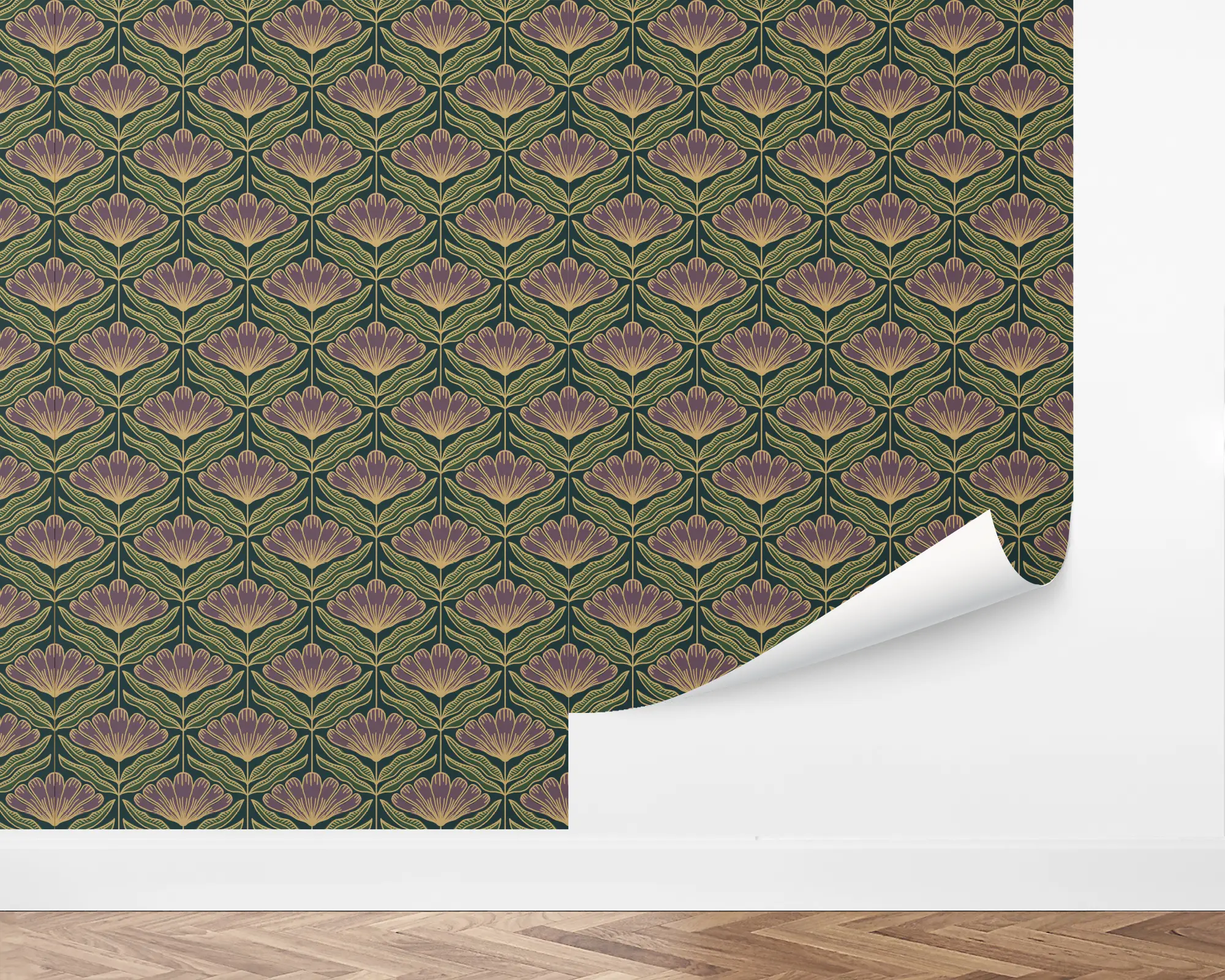 Create an unforgettable space with our Radiant Damask Peel and Stick Wallpaper. This vibrant wallpaper features symmetrical, fanning daisies over a deep green background. Fully customizable with any of our beautiful colors, this wallpaper is the perfect way to give any room some pizzazz.
