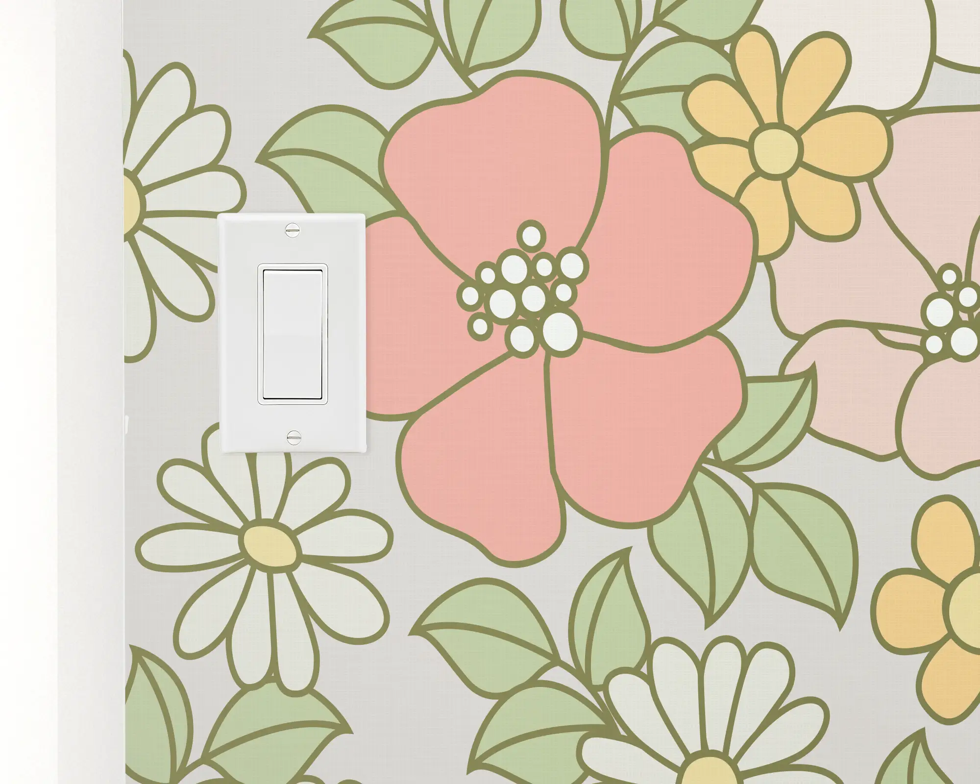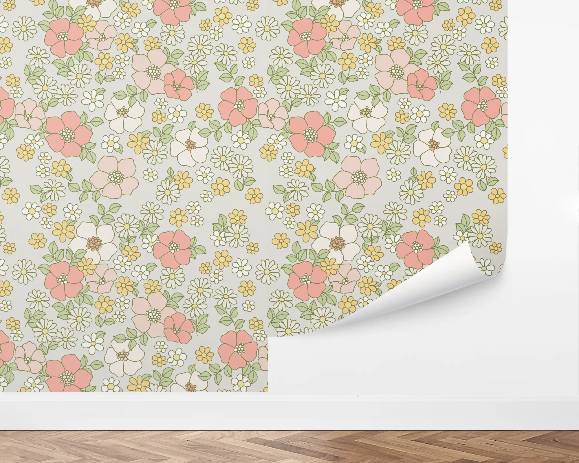 Add a flowery touch to any wall in your home with our Rainbow Floral Peel And Stick Removable Wallpaper. Colorful illustrations of flowers sprout up all over an egret background. Choose your favorite color combinations to match your interior style!