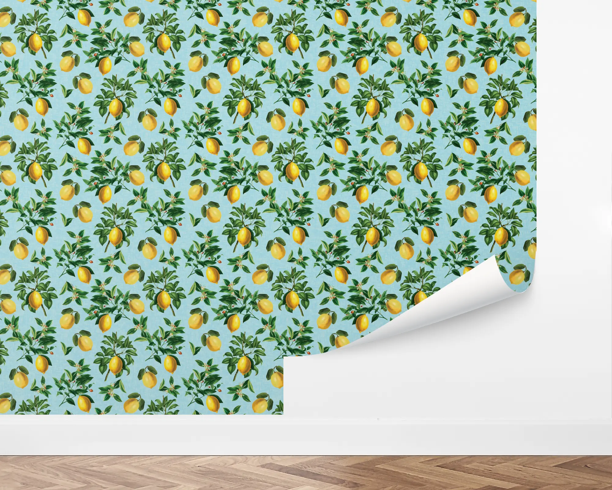 Add a bright citrus feeling to any wall in your home with our Retro Lemon Peel And Stick Removable Wallpaper. Realistic illustrations of lemon-laden branches hand on top of a textured porpoise background. Personalize with endless combinations of colors to match your personal style perfectly!