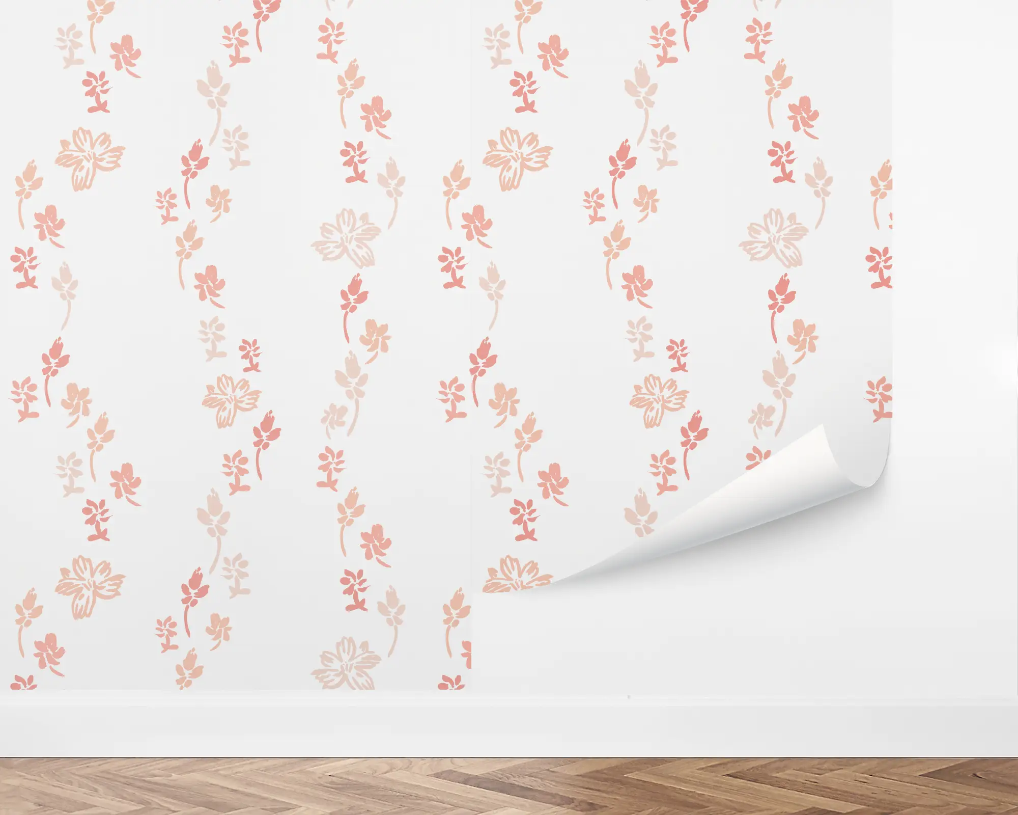 Our River Flower Peel and Stick Wallpaper add a simple botanical touch to any room in your home. Rows of illustrated florals in varying shades of pink are planted on top of a white background. Create the space of your dreams when you customize this with color combinations that match your interior style!