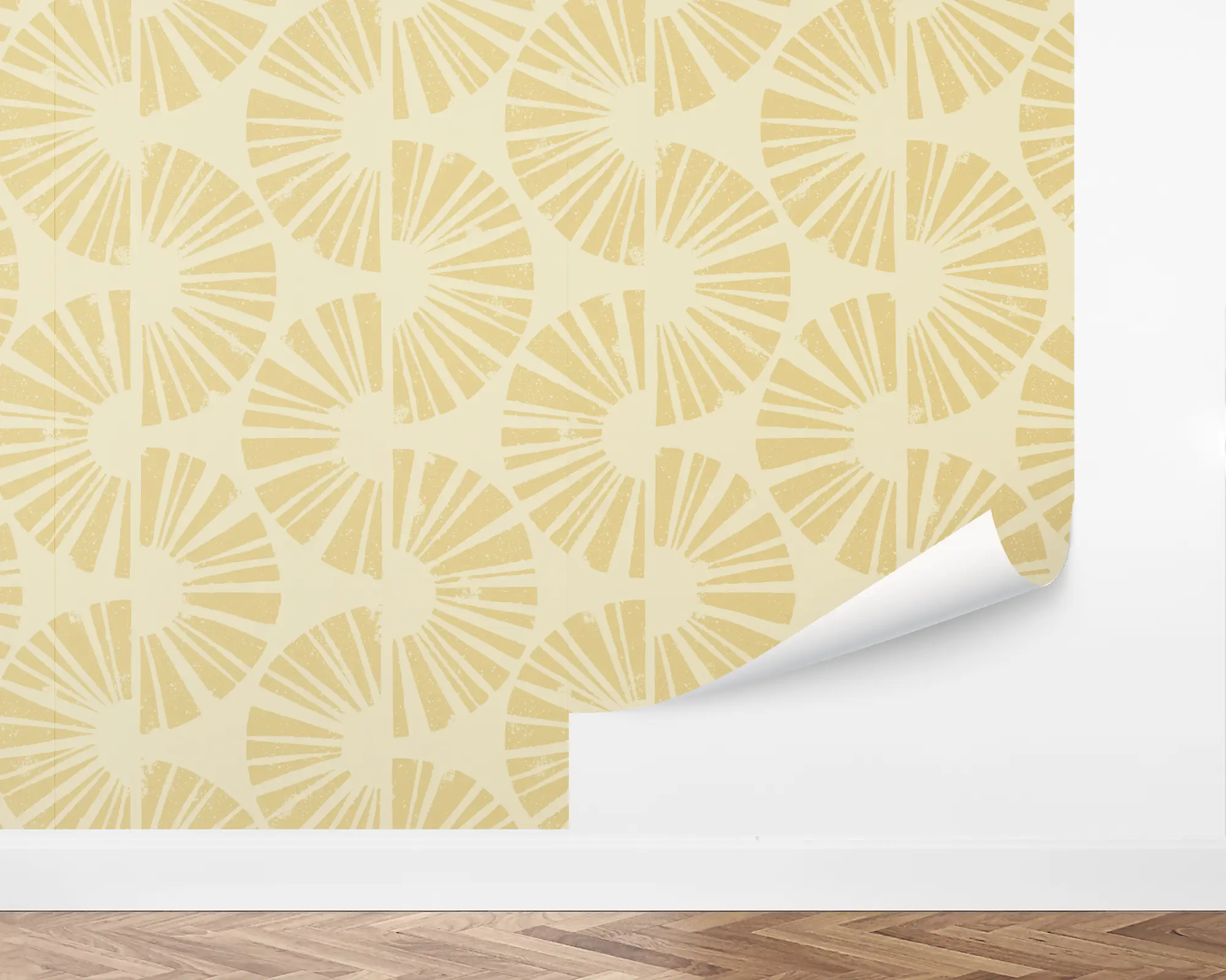 Add a splash of color to your space with our Sun Twist Peel and Stick Wallpaper. This exciting design features stamped sunburst halves alternating in vertical rows. Fully customizable with any of our beautiful colors, this removable wallpaper is the perfect way to brighten your lifestyle.