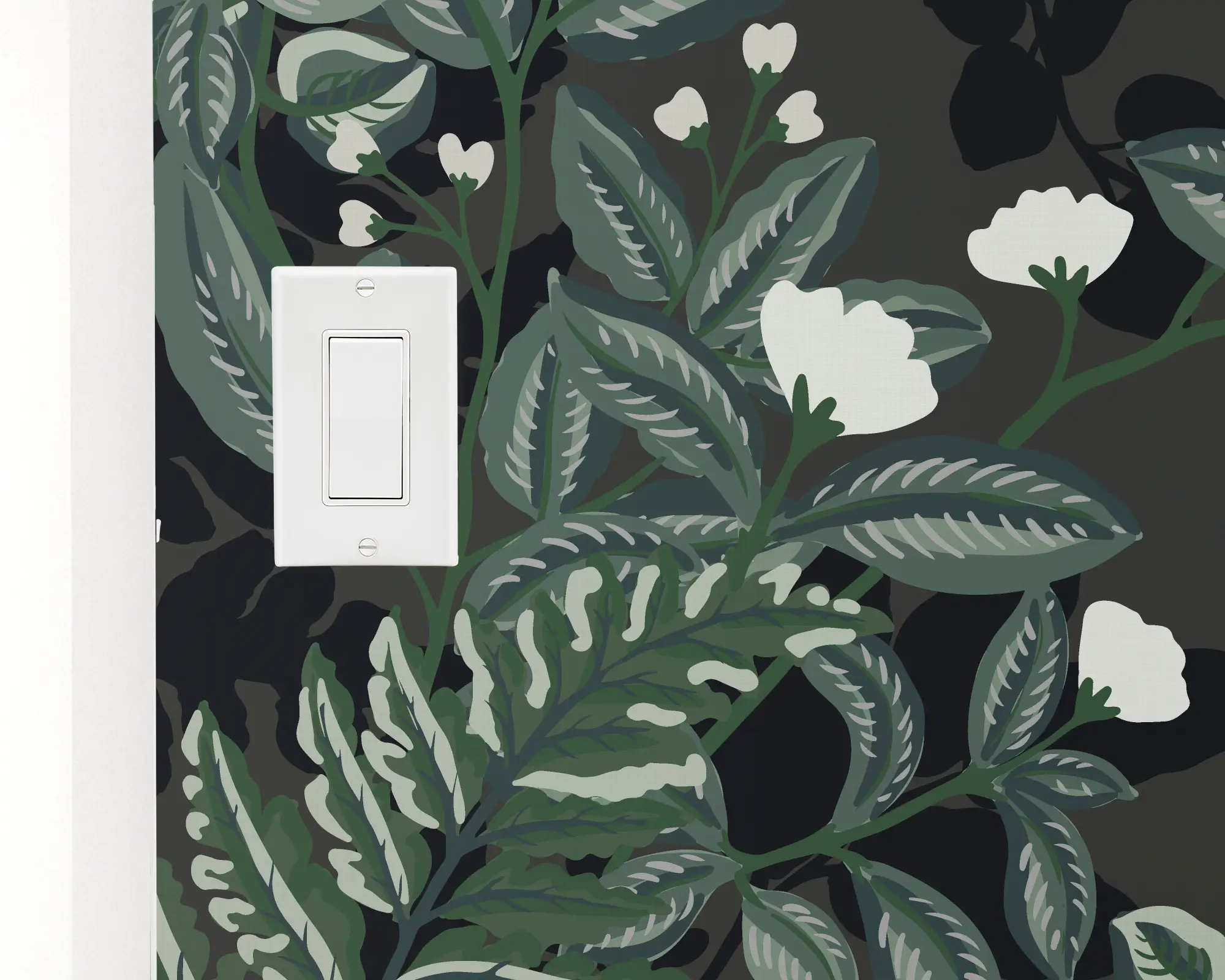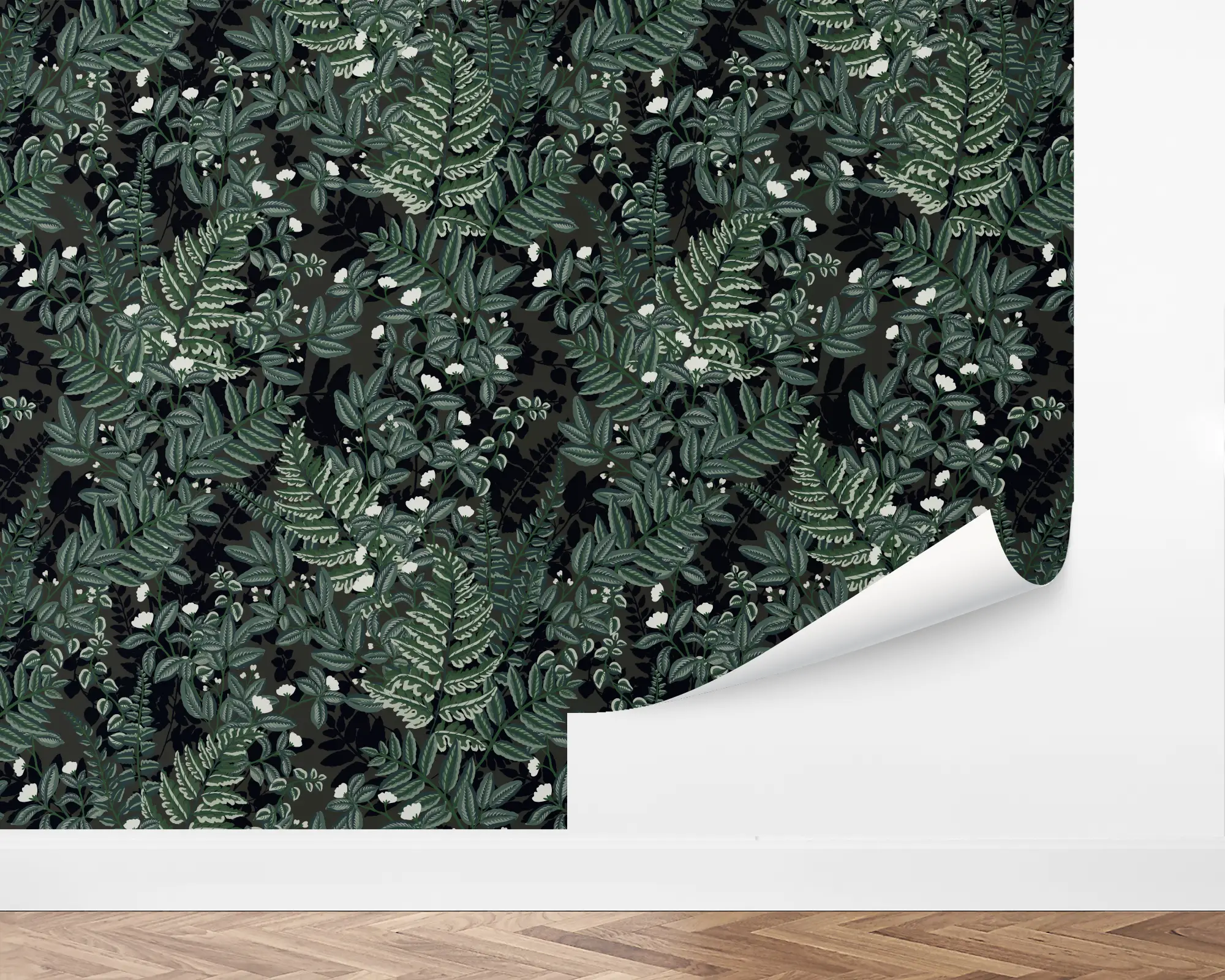 Our Thick Fern Foliage Peel And Stick Removable Wallpaper brings a moody nature vibe anywhere in your home. Illustrations of various leaves are laid on top of a charcoal background. Customize with endless color combinations to match your interior style perfectly!
