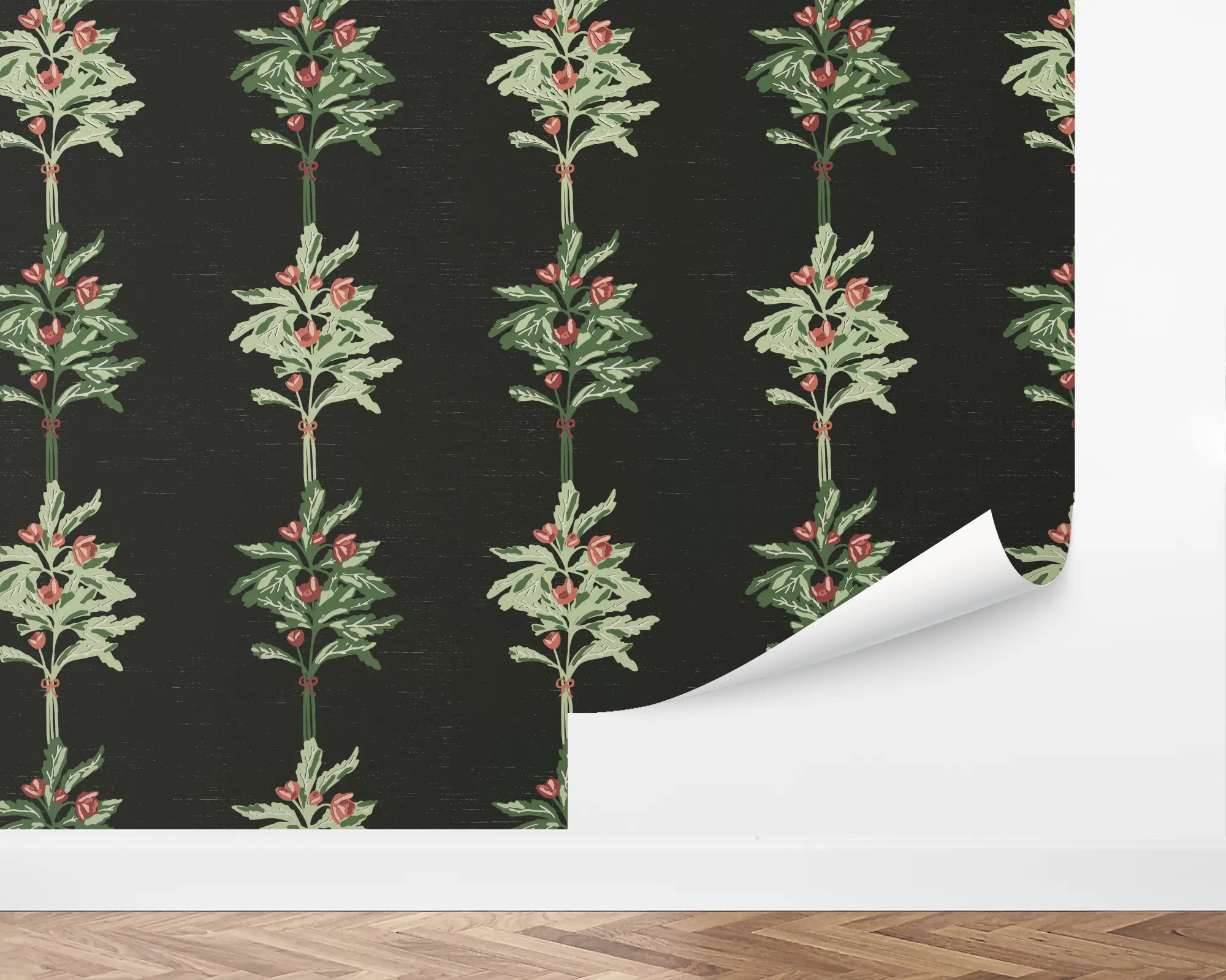 Our Trailing Bouquets Peel And Stick Removable Wallpaper is sure to bring a classic botanical look to any wall in your home. Matcha and Basil illustrations of bundles with tiny flowers are placed in rows on top of a textured charcoal background. Customize with endless combinations of colors to match your interior style!