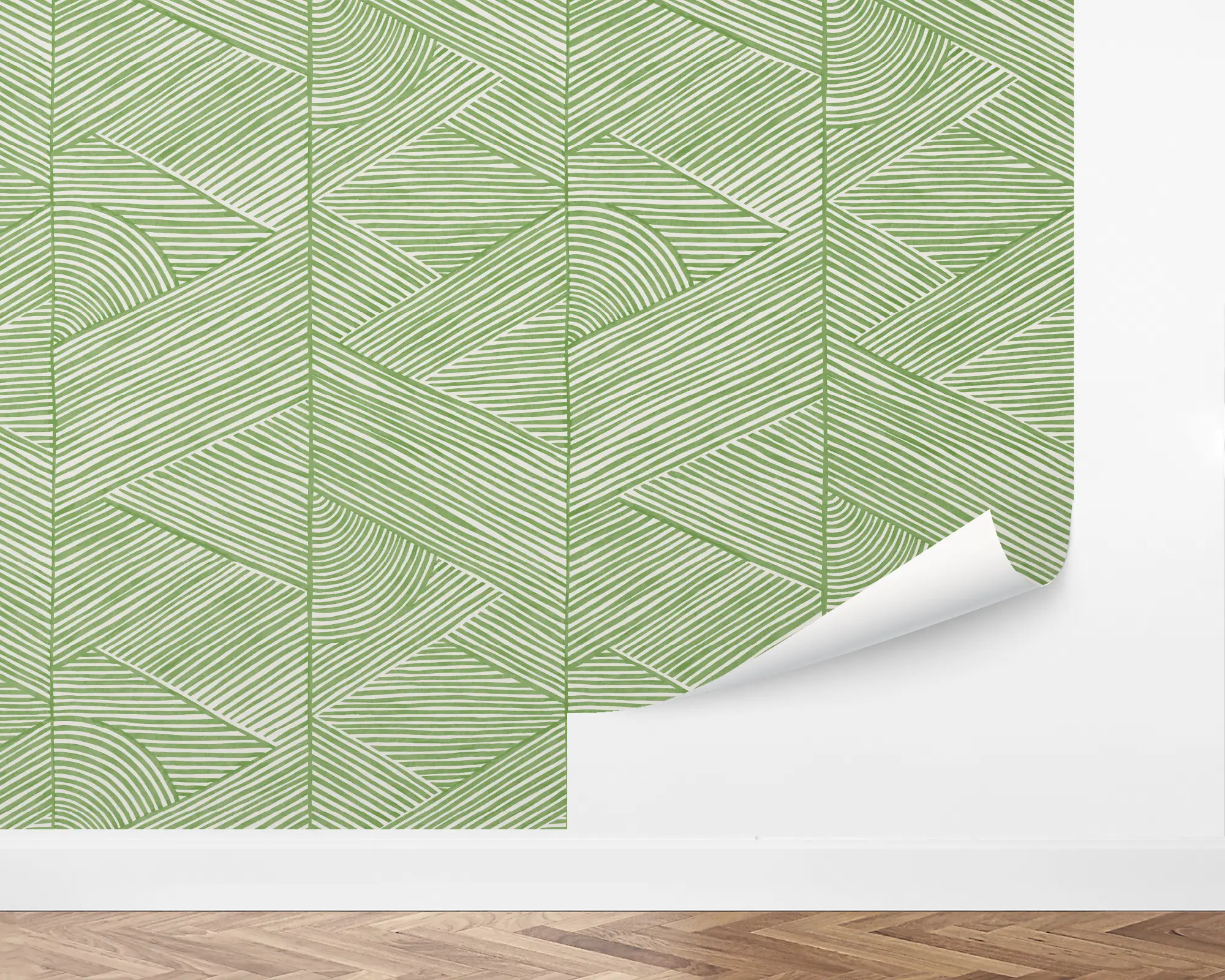 Create an artistic, eye-catching accent wall anywhere in your home with our Tranquility Vibes Peel and Stick Wallpaper. Moss illustrations of lines go in all different directions on top of a luster wallpaper. Personalize with endless combinations of colors to match your interior style!