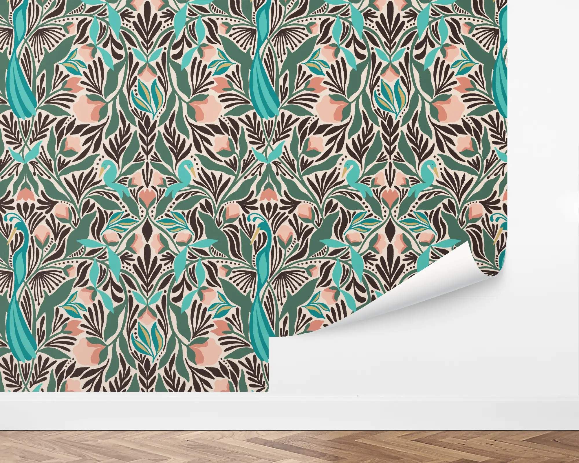 Show your daring side with our Vibrant Peacocks Peel and Stick Wallpaper. This exciting design features palm fronds, bright flowers, and showy peafowl arranged in an ornate motif. Fully customizable with any of our beautiful colors, this removable wallpaper is perfect for making a big statement.