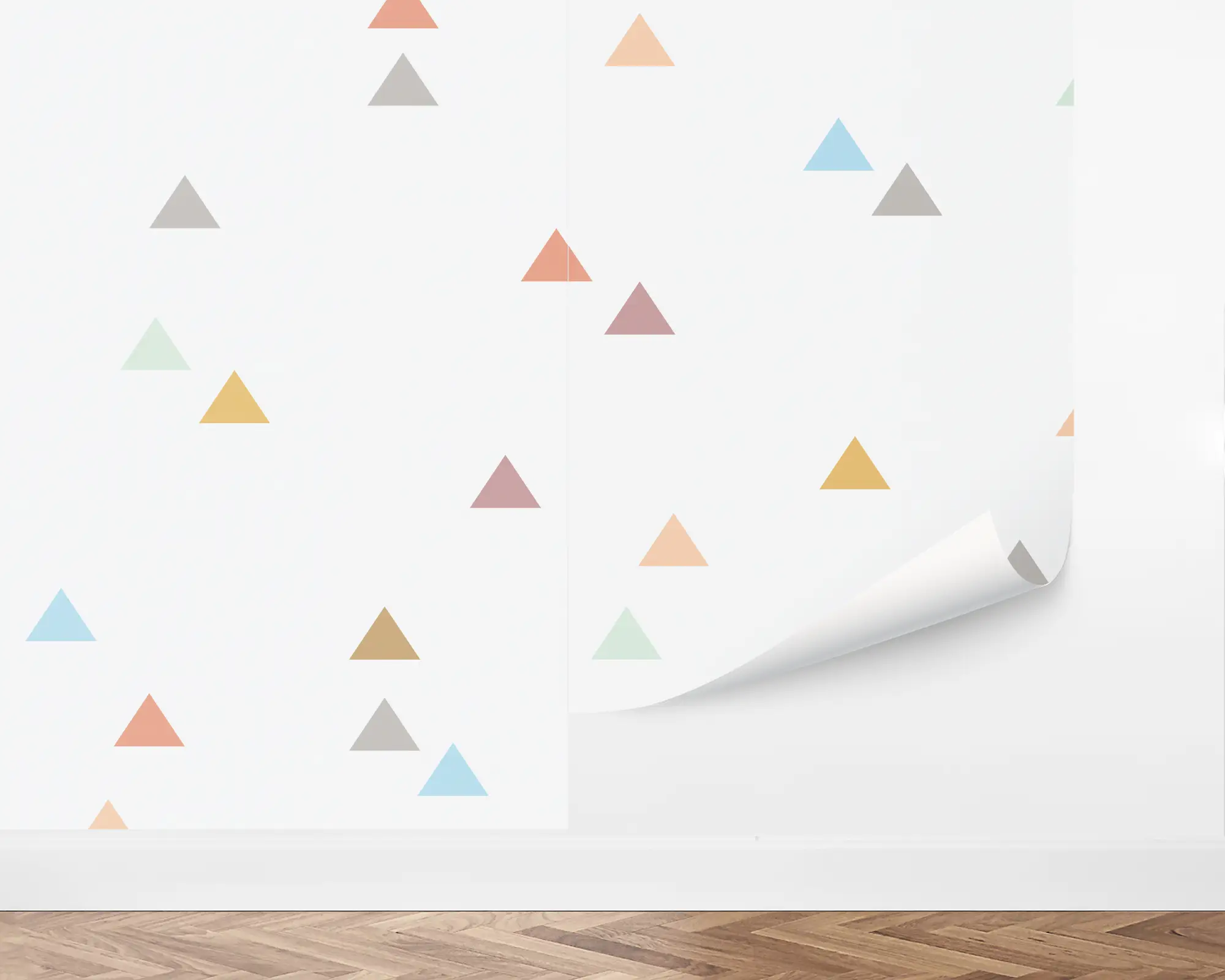 I love that I have the ability to pick the exact colors I want for my wallpaper. The triangles are so fun and will be perfect for the kids bathroom. The only way it could be more perfect is if they offered it in a scaled down size like the sample they send. But the actual size is really great too! The paper is really thick and seems durable, which will be great to wipe down if anything gets on it.